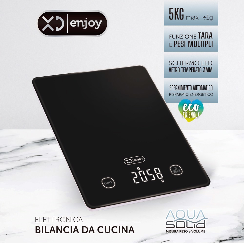 XD Enjoy XDCAM9140K, Bilancia da cucina elettronica, 5 kg, 1 g, Nero, Vetro temperato, Vetro