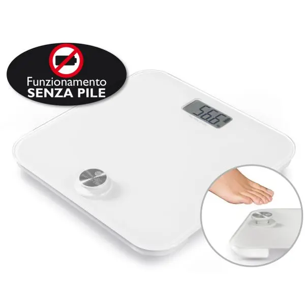 MACOM Smart Body Scale Bilancia pesapersone elettronica con funzionamento senza batterie Quadrato Bianco