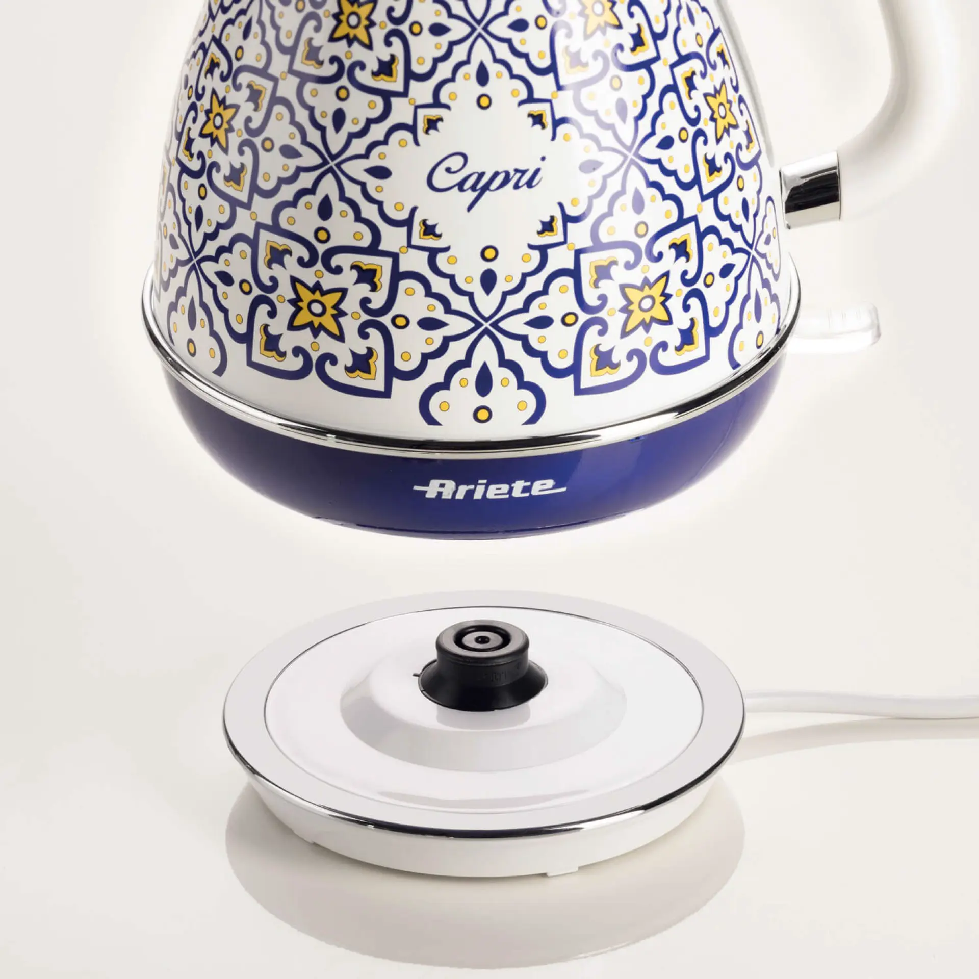 Design raffinato e funzionalità all’avanguardia per trasformare la cucina in un’oasi di bellezza, il fascino mediterraneo di questa gamma è ispirato allo stile unico e vibrante della meravigliosa località di Capri. Bollitore Elettrico della linea Capri dalle linee sinuose ed eleganti che richiamano l’arte e la cultura mediterranea, con base cordless e capacità di 1,7 litri, per rendere ancora più intenso il momento della colazione o della pausa pomeridiana. Il Bollitore Elettrico Capri è un vero alleato per gli amanti di the, tisane e bevande calde.