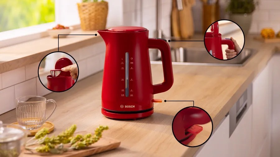 Bosch TWK3M124, 1,7 L, 2400 W, Rosso, Plastica