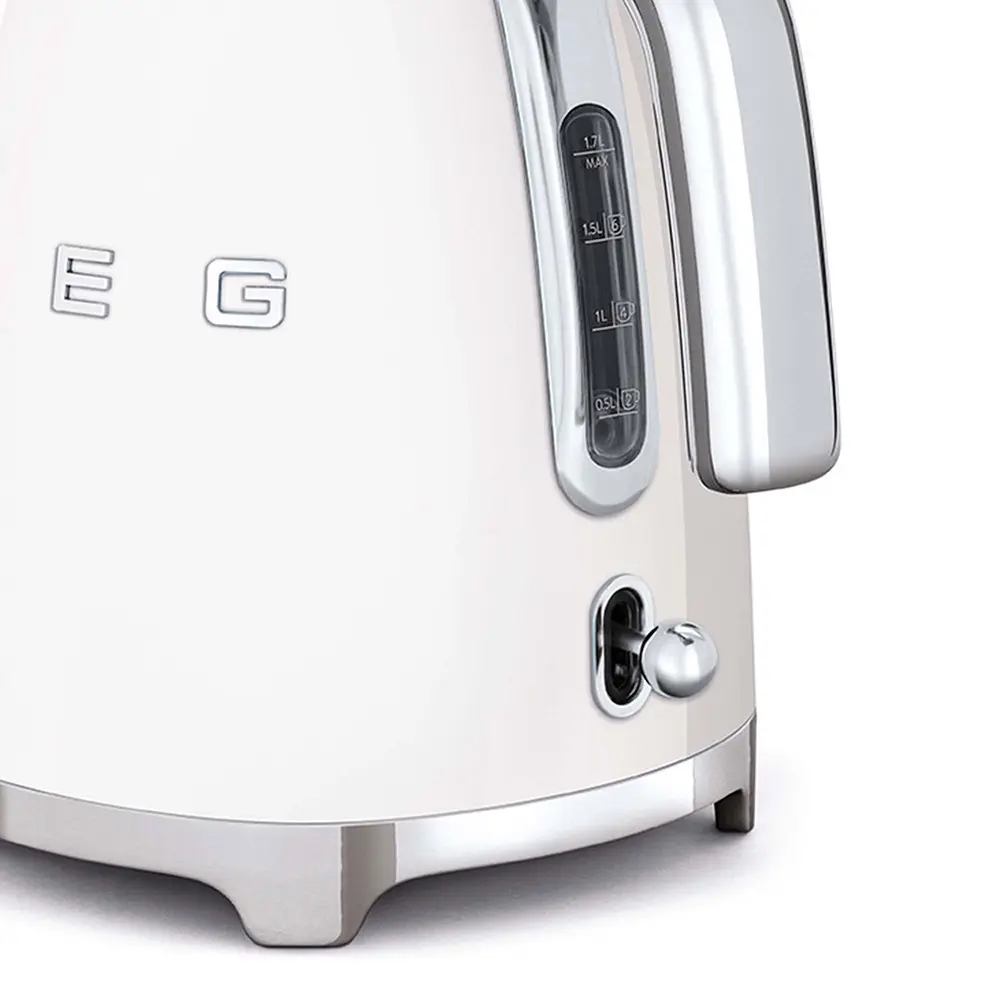 Smeg KLF03WHEU, 1,7 L, 2400 W, Bianco, Plastica, Acciaio inossidabile, Indicatore del livello dell'acqua, Arresto di sicurezza contro il surriscaldamento