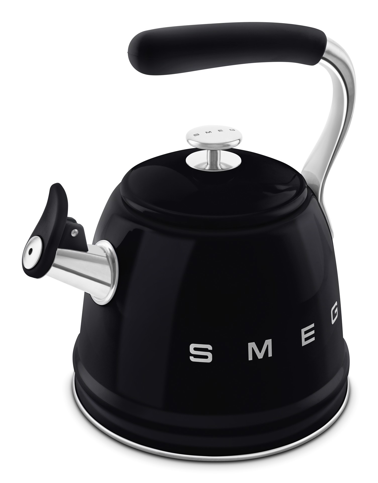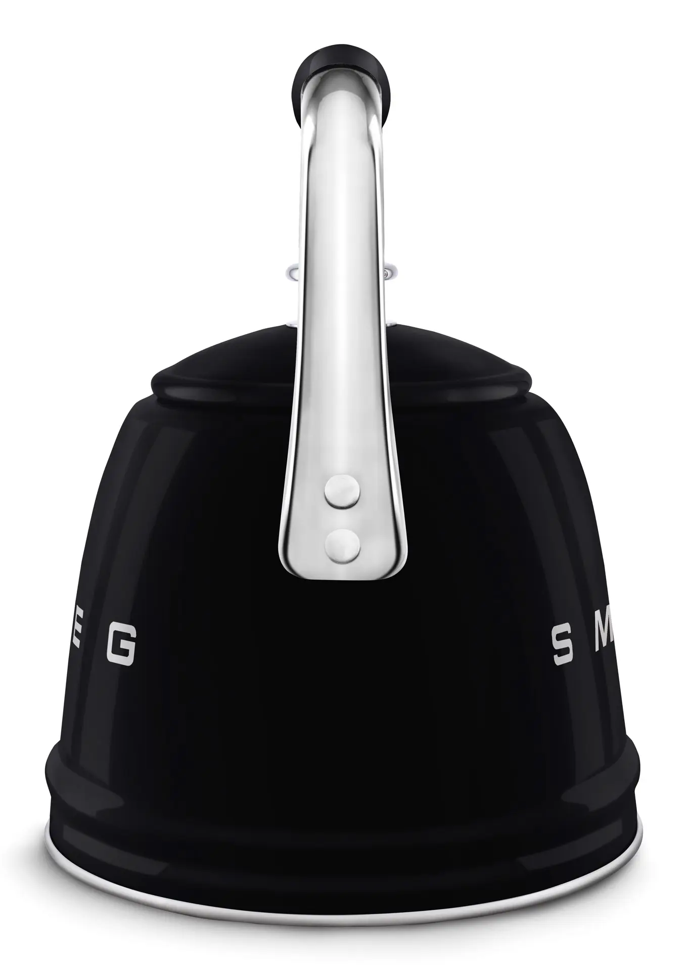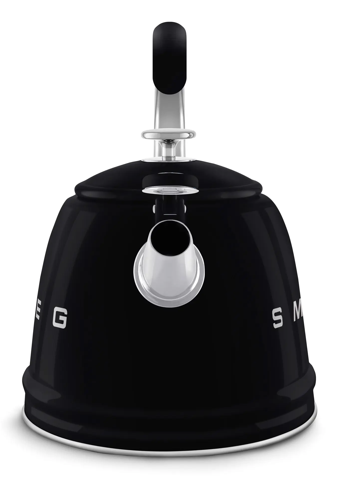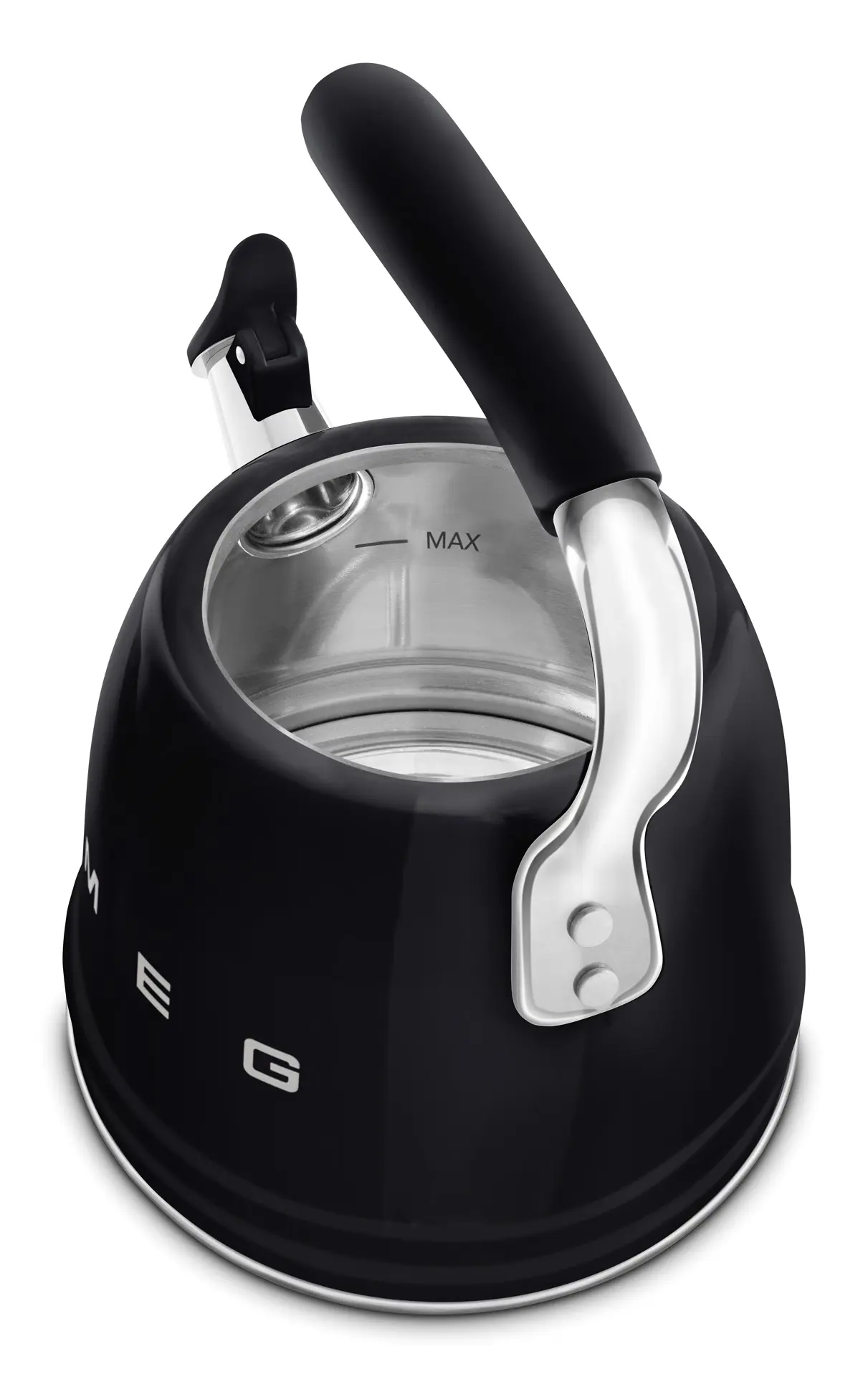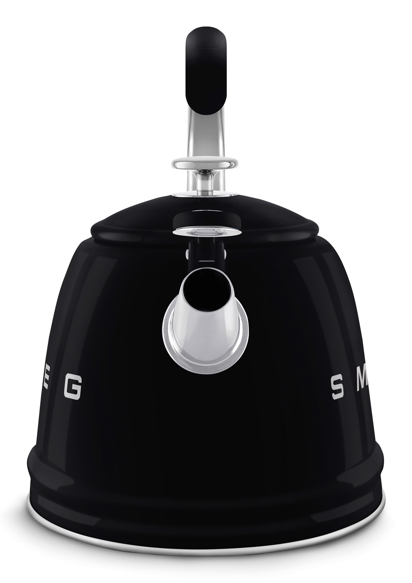 Smeg Bollitore con fischio 50's Style - Nero LUCIDO - WKF01BL, 2,3 L, Nero, Acciaio inox, Nero, Acciaio inox, Alluminio, Acciaio inox, Silicone, Acciaio inox, Incernierato