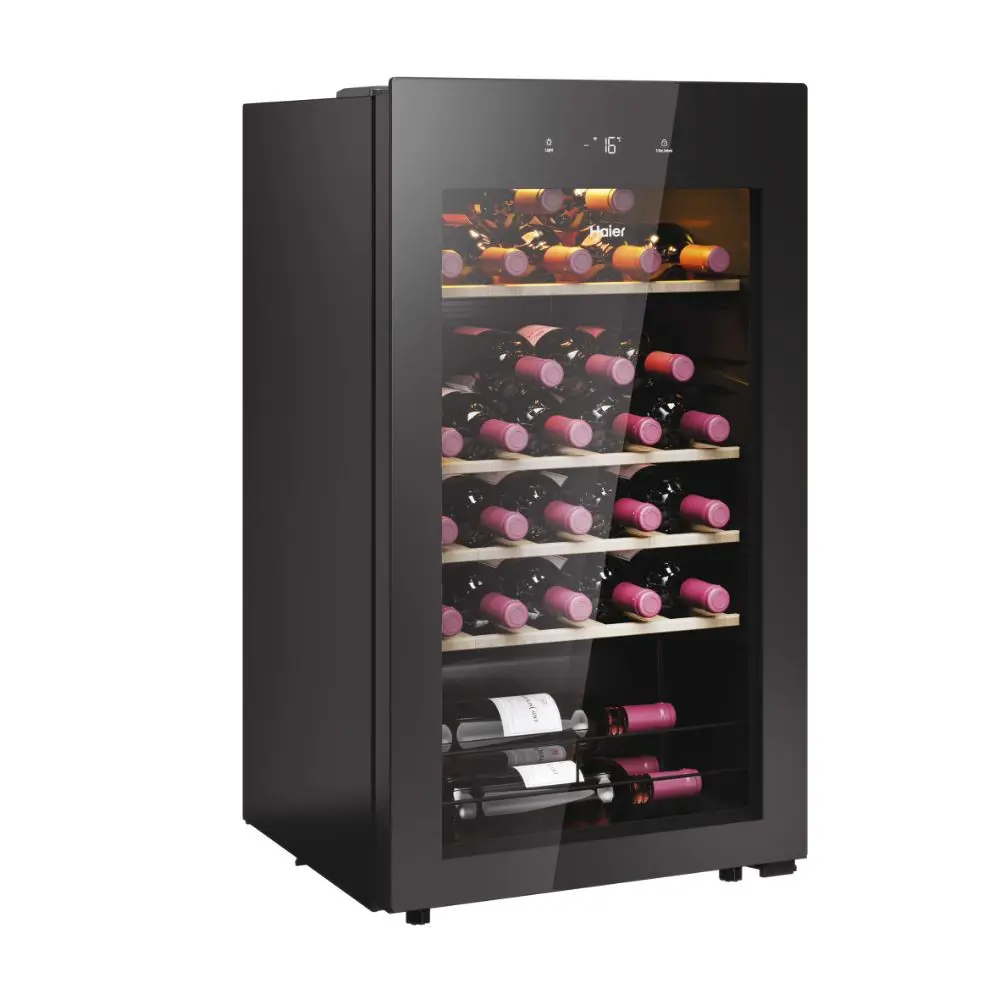 Haier Wine Bank 50 Serie 3 HWS34GGH1, Cantinetta vino con compressore, Libera installazione, 34 bottiglia/bottiglie, G, Nero, Nero