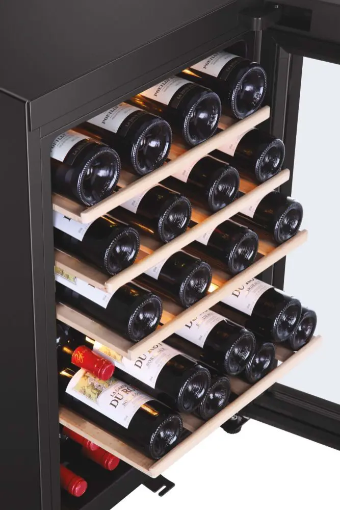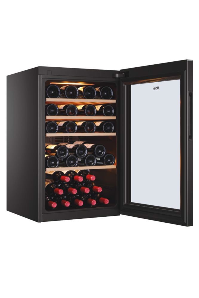 Haier Wine Bank 50 Serie 5 HWS49GA, Cantinetta vino con compressore, Libera installazione, 49 bottiglia/bottiglie, F, Nero, Nero