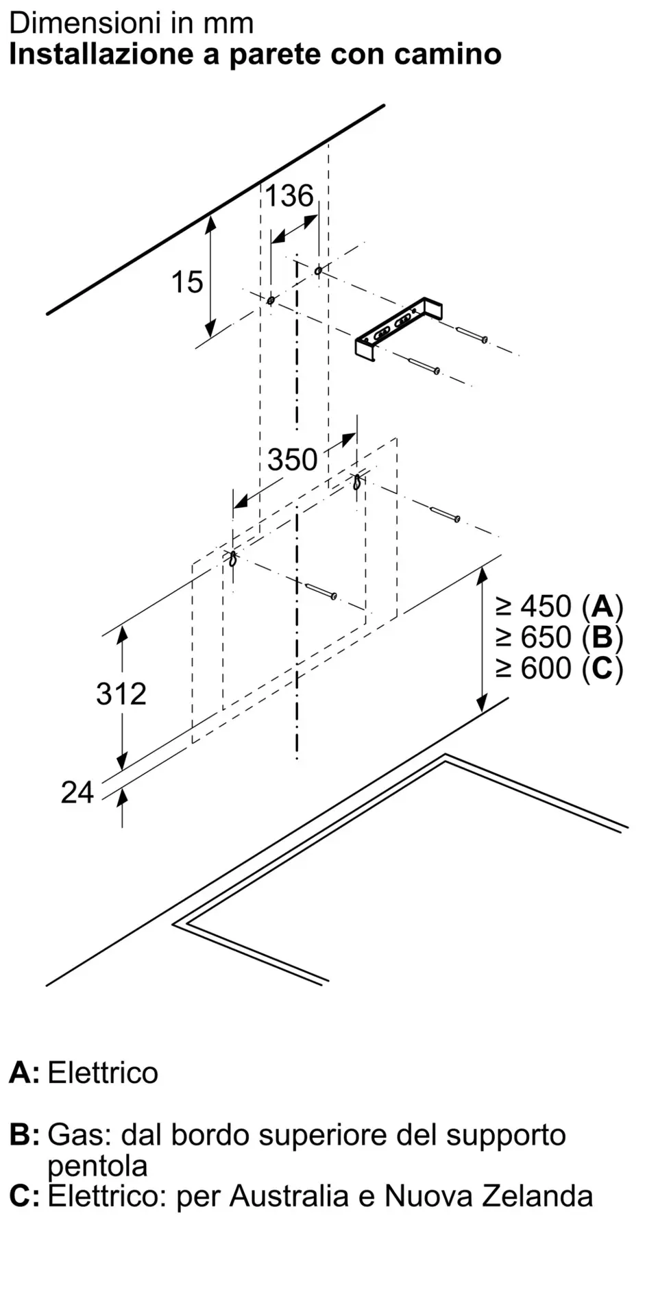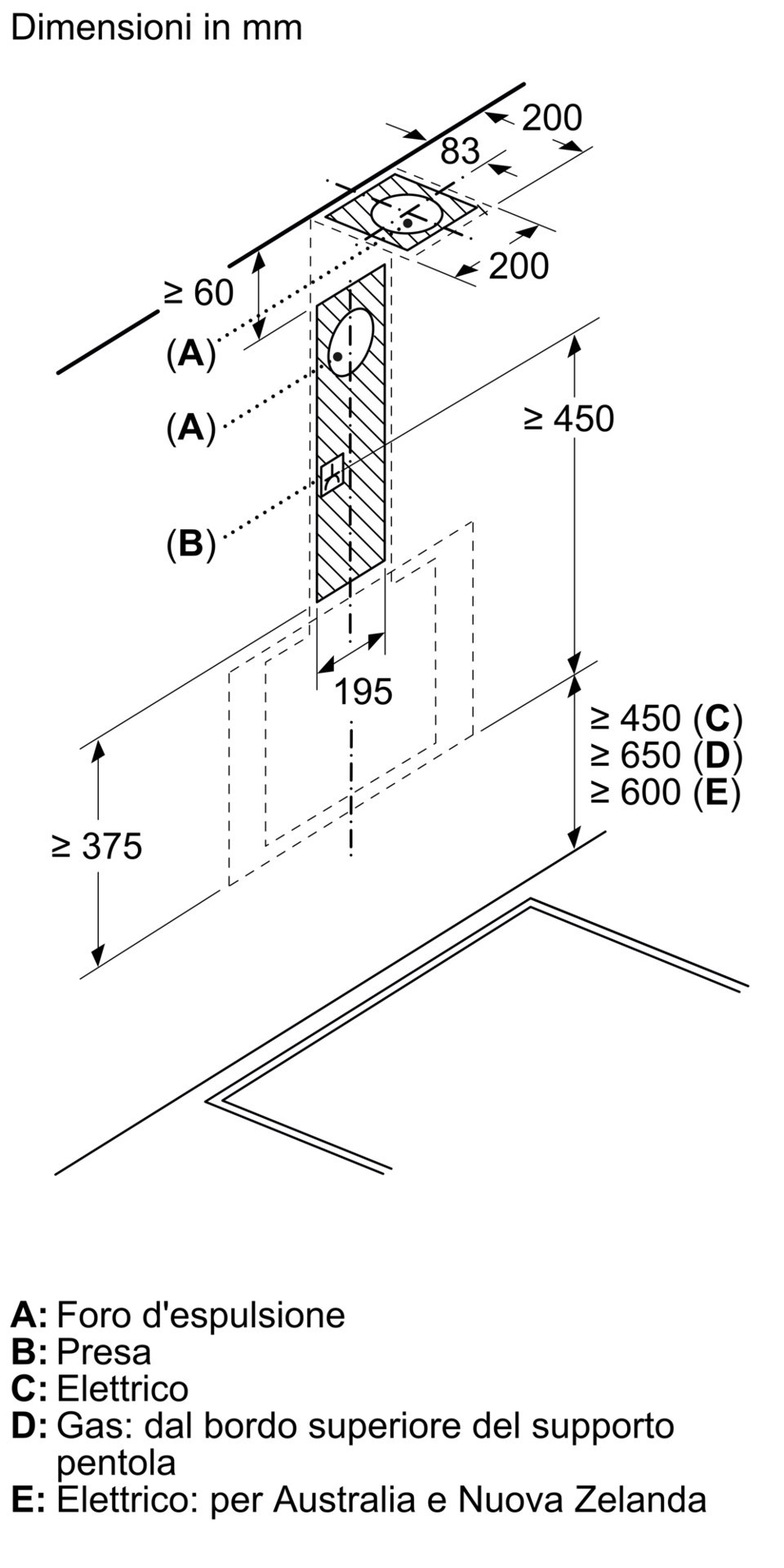 Bosch Serie 2 DWK65DK60, 430 m³/h, Aspirante/Filtrante, A, A, E, 60 dB