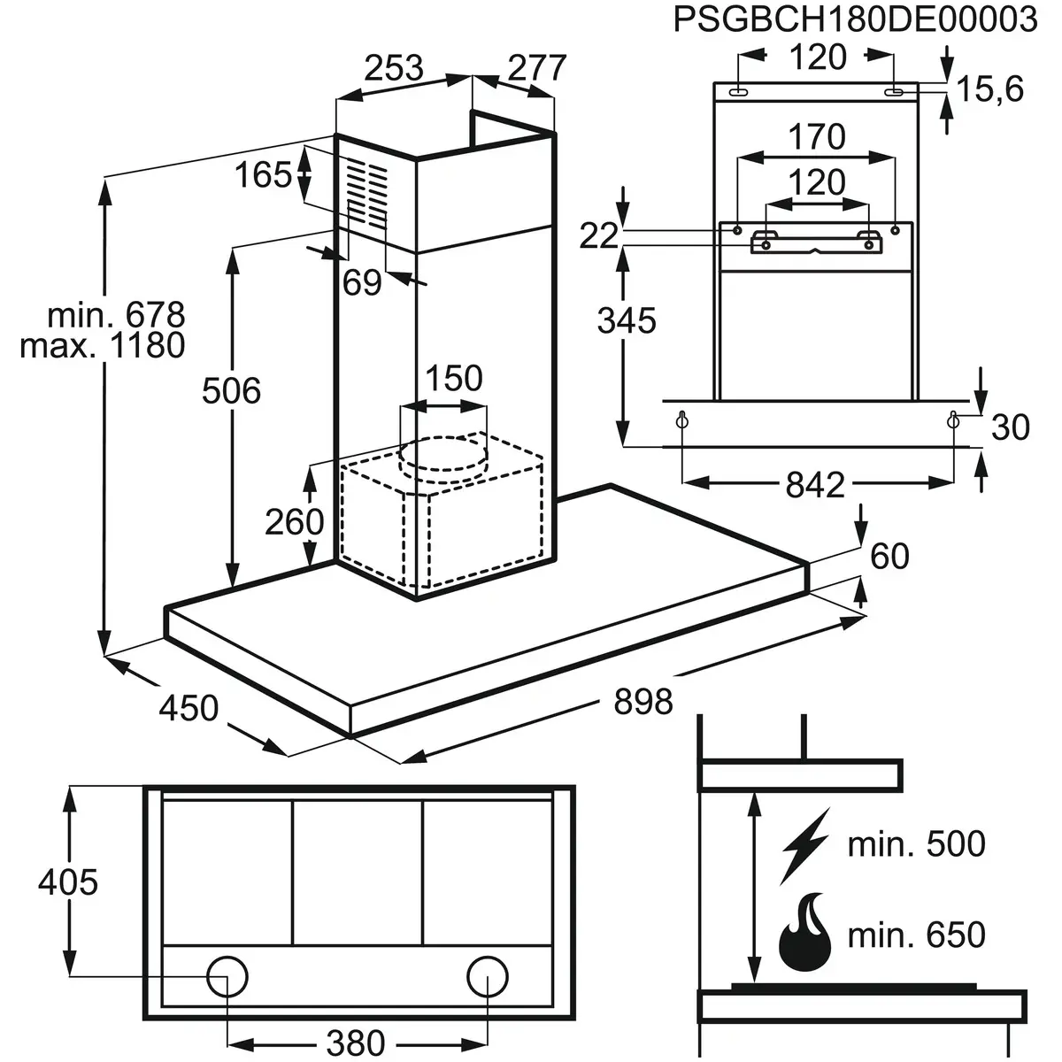 Electrolux LFT419X. Potenza massima di estrazione: 600 m³/h, Tipo di estrazione: Aspirante/Filtrante, Classe di efficienza dinamica del fluido: D. Tipo: Cappa aspirante a parete, Colore del prodotto: Acciaio inossidabile, Potenza lampadina: 5 W. Tipo di filtro antigrasso: Alluminio, Numero di filtri: 3 pezzo(i). Classe efficienza energetica: C, Potenza motore: 145 W, Consumo energetico annuo: 96 kWh. Larghezza: 898 mm, Profondità: 450 mm, Altezza: 678 mm