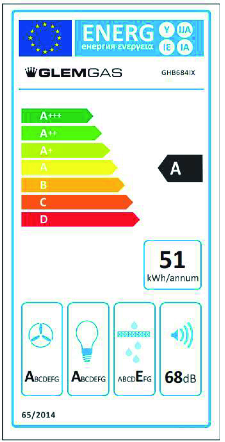 Glem Gas GHB684IX, 650 m³/h, Aspirante, A, B, E, 68 dB