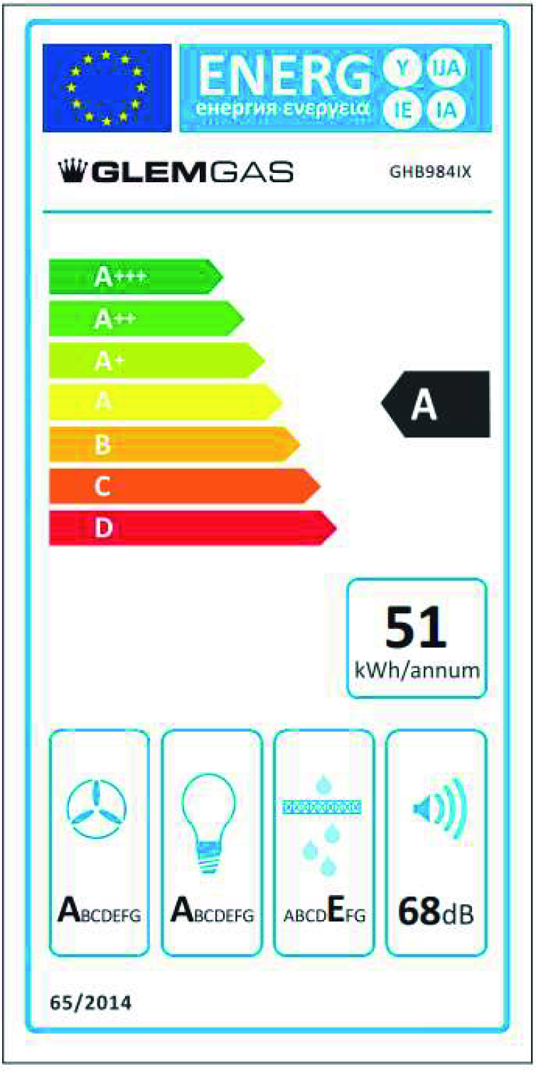 Glem Gas GHB984IX, 650 m³/h, Aspirante, A, A, E, 68 dB