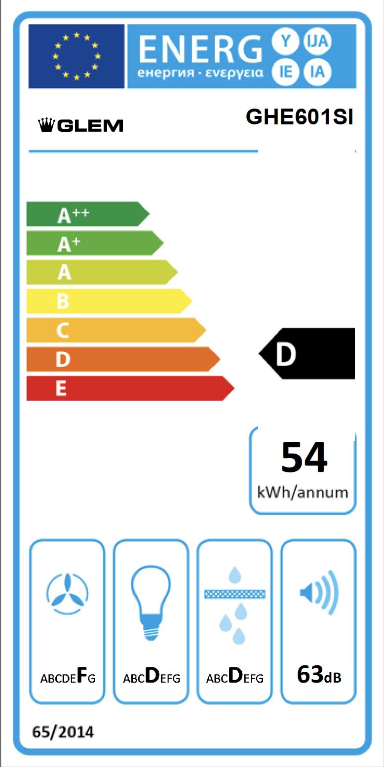 Glem Gas GHE601SI, 172 m³/h, Aspirante, F, D, D, 63 dB
