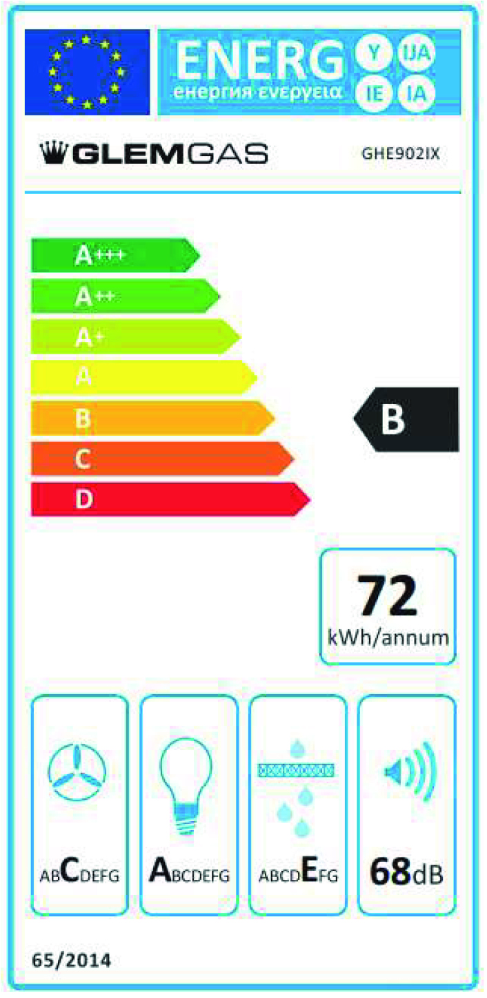 Glem Gas GHE902IX, 645 m³/h, Filtrante, B, A, E, 68 dB