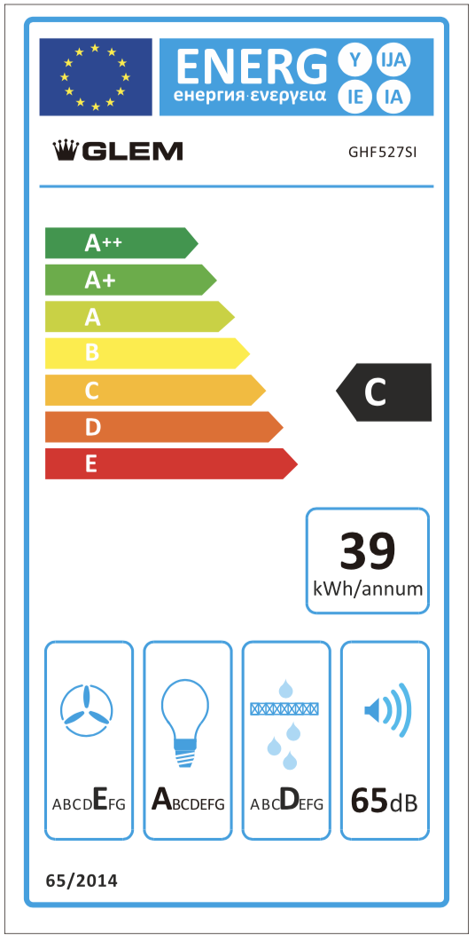 Glem Gas GHF527SI, 260 m³/h, Aspirante/Filtrante, E, A, D, 65 dB