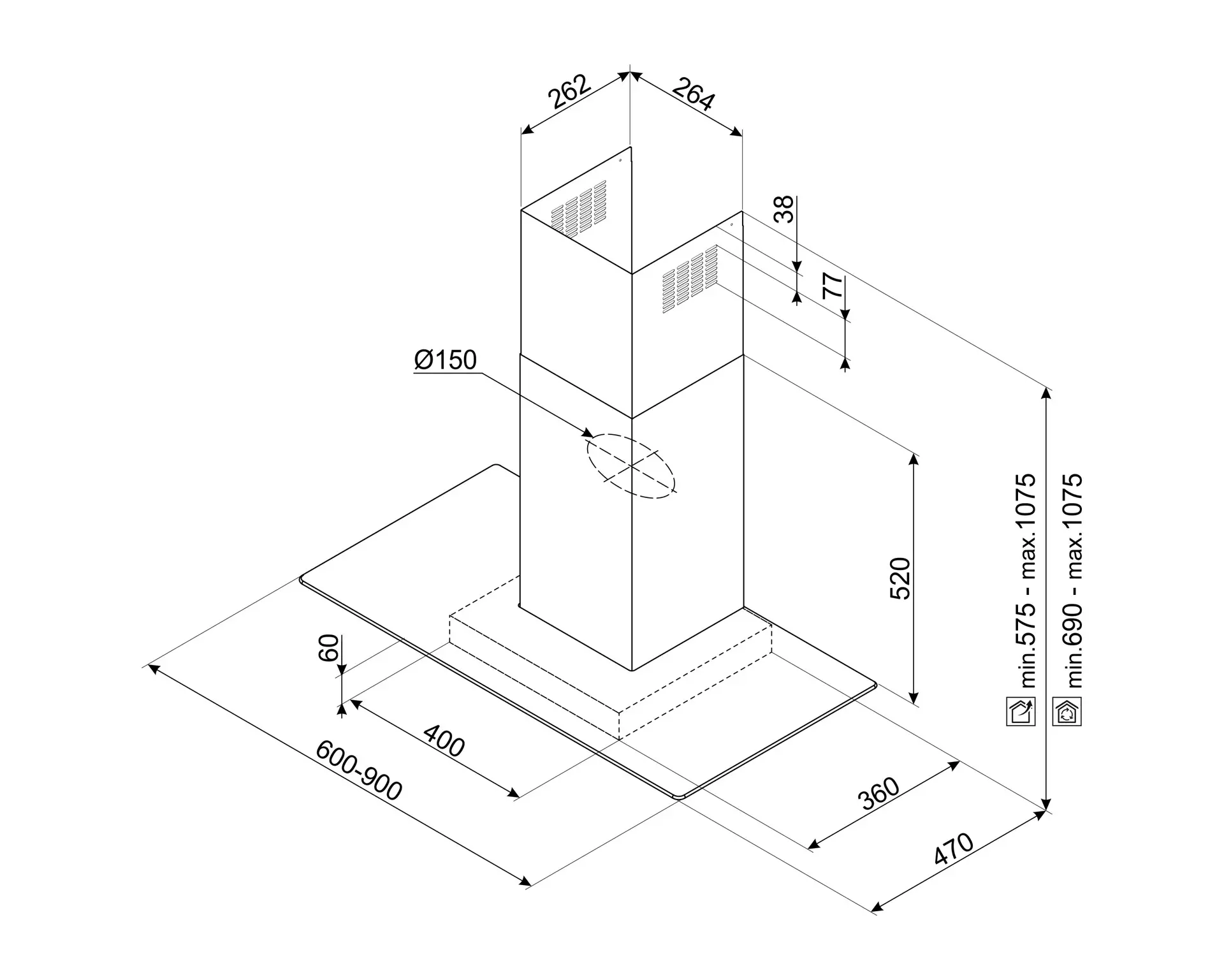 Smeg KBT600ve. Potenza massima di estrazione: 451 m³/h, Tipo di estrazione: Aspirante/Filtrante, Classe di efficienza dinamica del fluido: A. Tipo: Integrato, Colore del prodotto: Acciaio inossidabile, Paese di origine: Italia. Tipo di filtro antigrasso: Alluminio, Numero di filtri: 1 pz. Classe efficienza energetica: B, Consumo energetico annuo: 60 kWh, Potenza motore: 230 W. Larghezza: 600 mm, Profondità: 450 mm, Peso: 12,8 kg