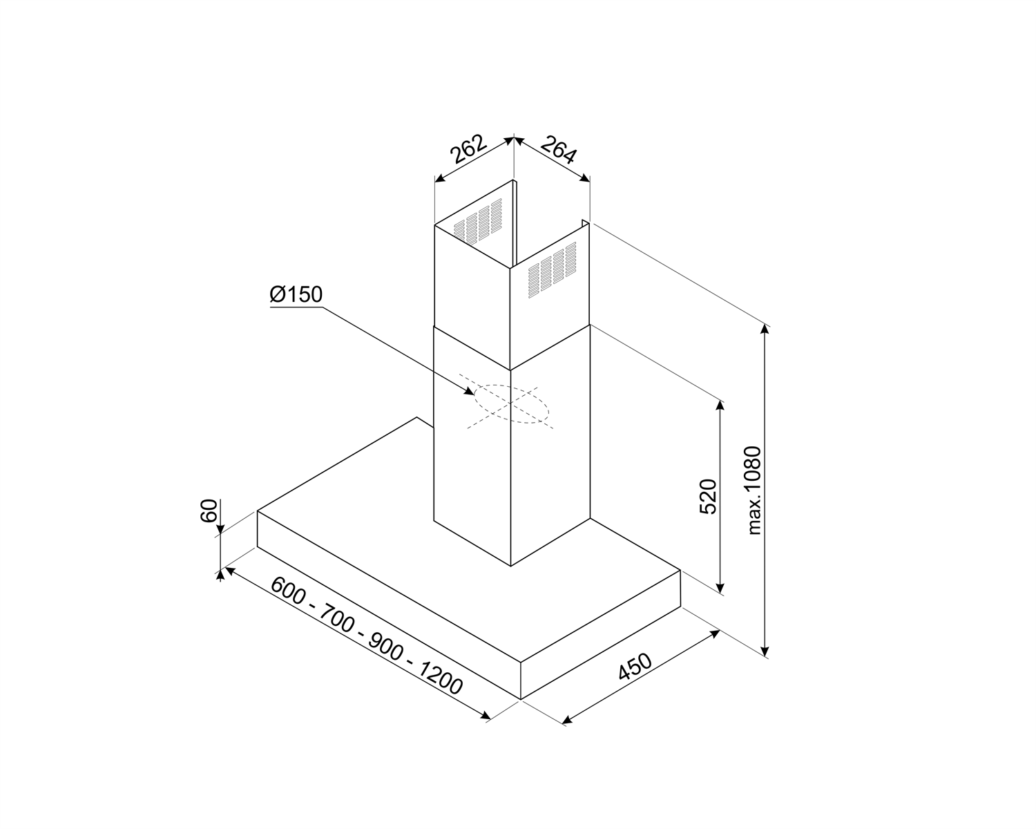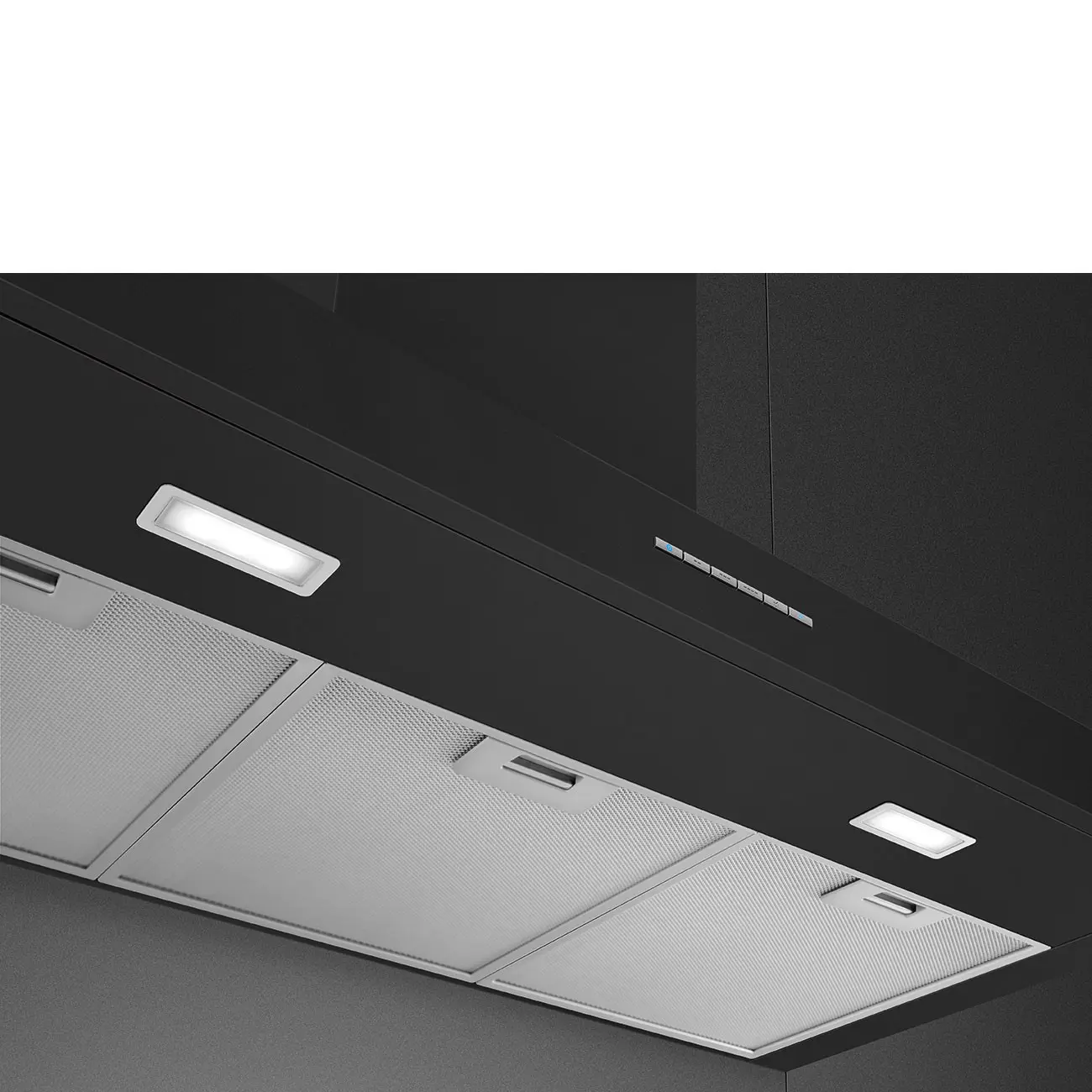Smeg KBT900NE. Potenza massima di estrazione: 480 m³/h, Tipo di estrazione: Aspirante/Filtrante, Classe di efficienza dinamica del fluido: A. Tipo: Cappa aspirante a parete, Colore del prodotto: Nero, Potenza lampadina: 1,3 W. Tipo di filtro antigrasso: Alluminio, Numero di filtri: 3 pz. Classe efficienza energetica: A, Consumo energetico annuo: 54 kWh, Scala di efficienza energetica: Da A+++ a D. Larghezza: 1200 mm, Profondità: 450 mm, Altezza (min.): 58 cm