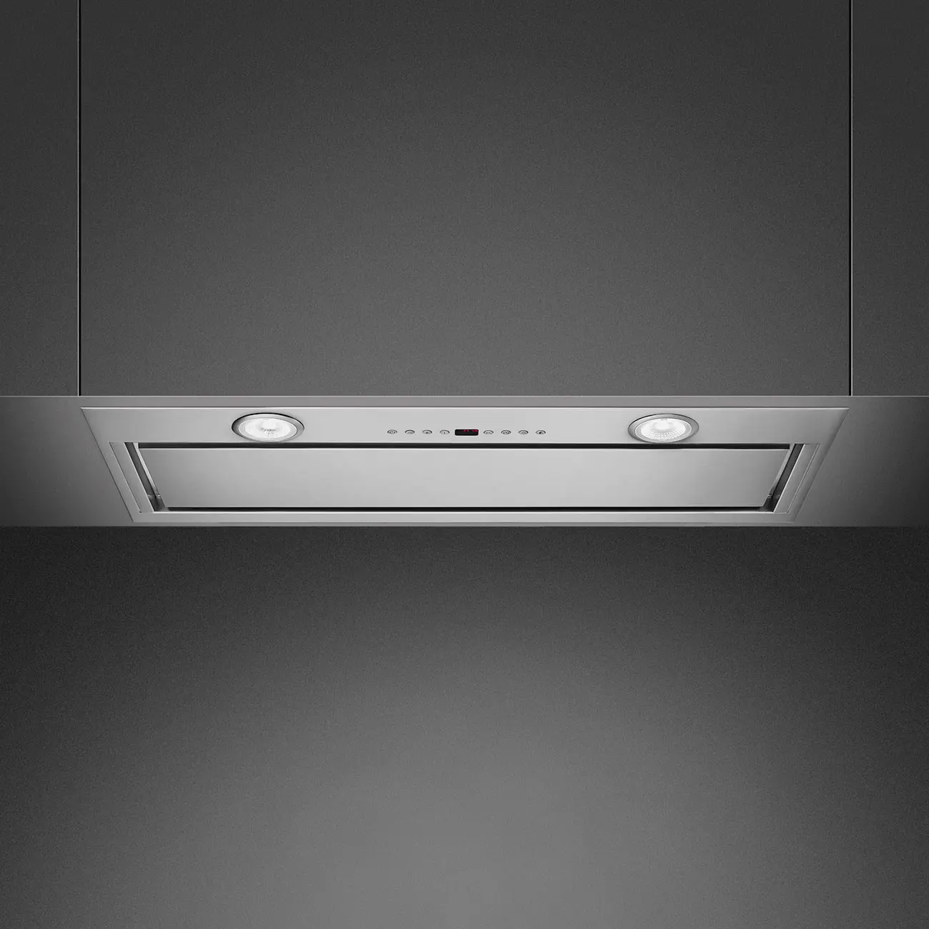 Smeg KICGR70X. Potenza massima di estrazione: 720 m³/h, Tipo di estrazione: Filtrante, Classe di efficienza dinamica del fluido: A. Tipo: Integrato, Colore del prodotto: Acciaio inossidabile, Materiale della scocca: Acciaio inossidabile. Tipo di filtro antigrasso: Alluminio, Numero di filtri: 1 pz. Classe efficienza energetica: A, Consumo energetico annuo: 54 kWh, Scala di efficienza energetica: Da A+++ a D. Larghezza: 700 mm, Profondità: 300 mm, Altezza (max): 33 cm