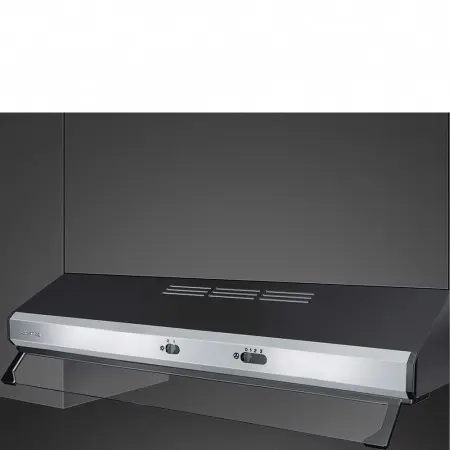 Smeg KSEC81XE2. Potenza massima di estrazione: 285 m³/h, Classe di efficienza dinamica del fluido: E, Classe di efficienza luminosa: E. Tipo: Incassato, Colore del prodotto: Acciaio inossidabile, Potenza lampadina: 4 W. Tipo di filtro antigrasso: Alluminio, Numero di filtri: 1 pz. Classe efficienza energetica: D, Consumo energetico annuo: 67 kWh, Carico di collegamento: 133 W. Larghezza: 798 mm, Profondità: 525 mm, Altezza (min.): 15 cm