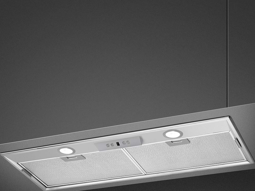 Smeg KSEG7XSA. Potenza massima di estrazione: 691 m³/h, Tipo di estrazione: Aspirante, Classe di efficienza dinamica del fluido: C. Tipo: Integrato, Colore del prodotto: Acciaio inossidabile, Potenza lampadina: 5 W. Tipo di filtro antigrasso: Alluminio, Numero di filtri: 2 pz. Classe efficienza energetica: C, Consumo energetico annuo: 109,1 kWh, Carico di collegamento: 285 W. Larghezza: 693 mm, Profondità: 289 mm, Altezza (max): 38,3 cm