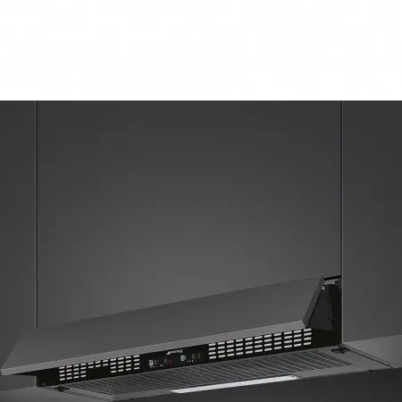 Smeg KSEIR92NE2. Potenza massima di estrazione: 225 m³/h, Classe di efficienza dinamica del fluido: E, Classe di efficienza luminosa: E. Tipo: Integrato, Colore del prodotto: Nero, Potenza lampadina: 4 W. Numero di filtri: 1 pz. Classe efficienza energetica: D, Consumo energetico annuo: 71 kWh, Carico di collegamento: 123 W. Larghezza: 898 mm, Profondità: 490 mm, Altezza (min.): 15 cm