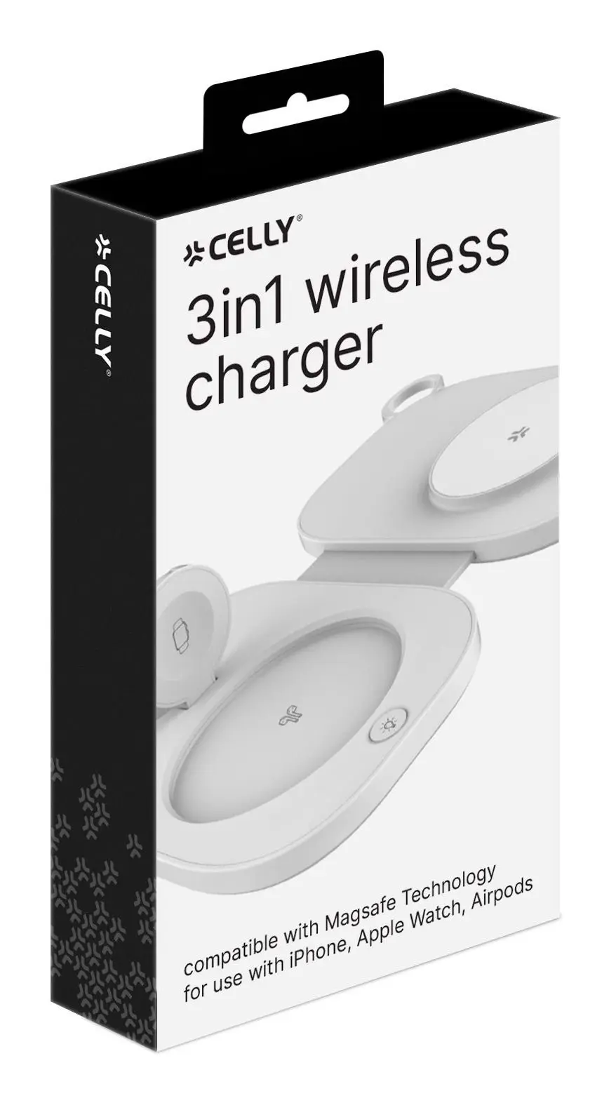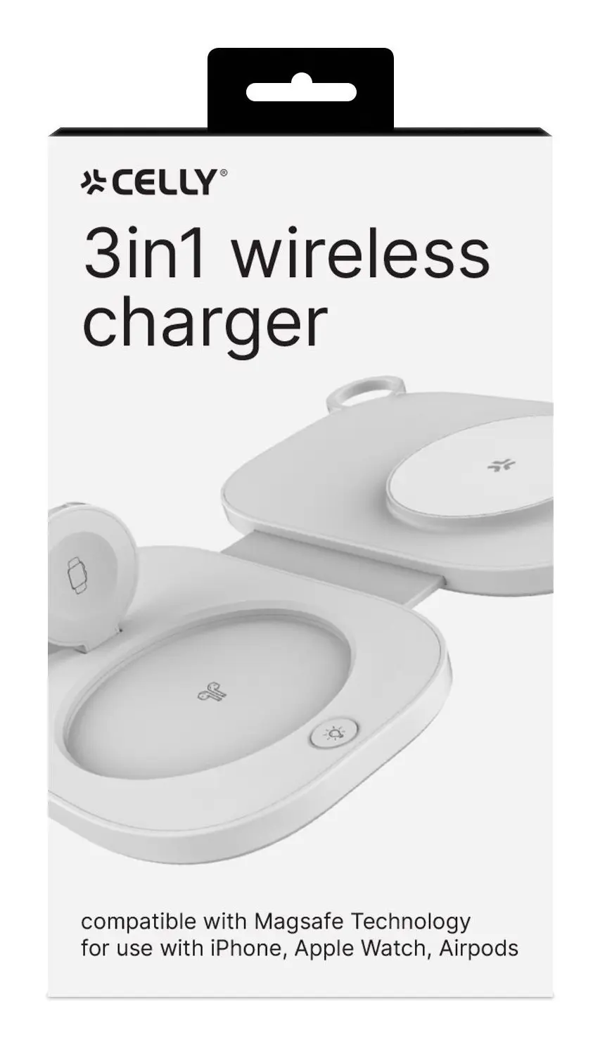 CELLY MAGPOCKET3IN1WH Caricabatterie per dispositivi mobili Cuffie, Smartphone, Orologio intelligente Bianco USB Carica wireless Ricarica rapida Interno