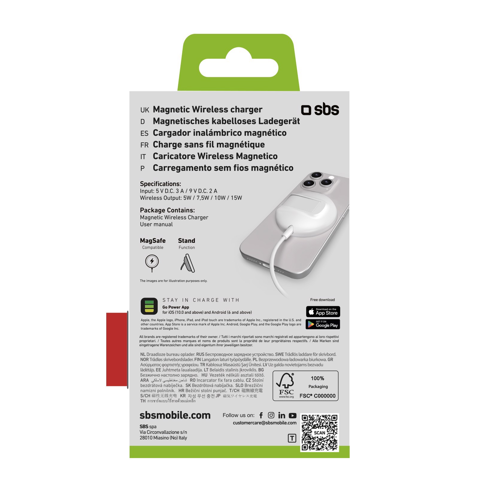 SBS TEWIRQI215W Basetta di ricarica wireless Qi2 compatibile MagSafe 15W con funzione stand