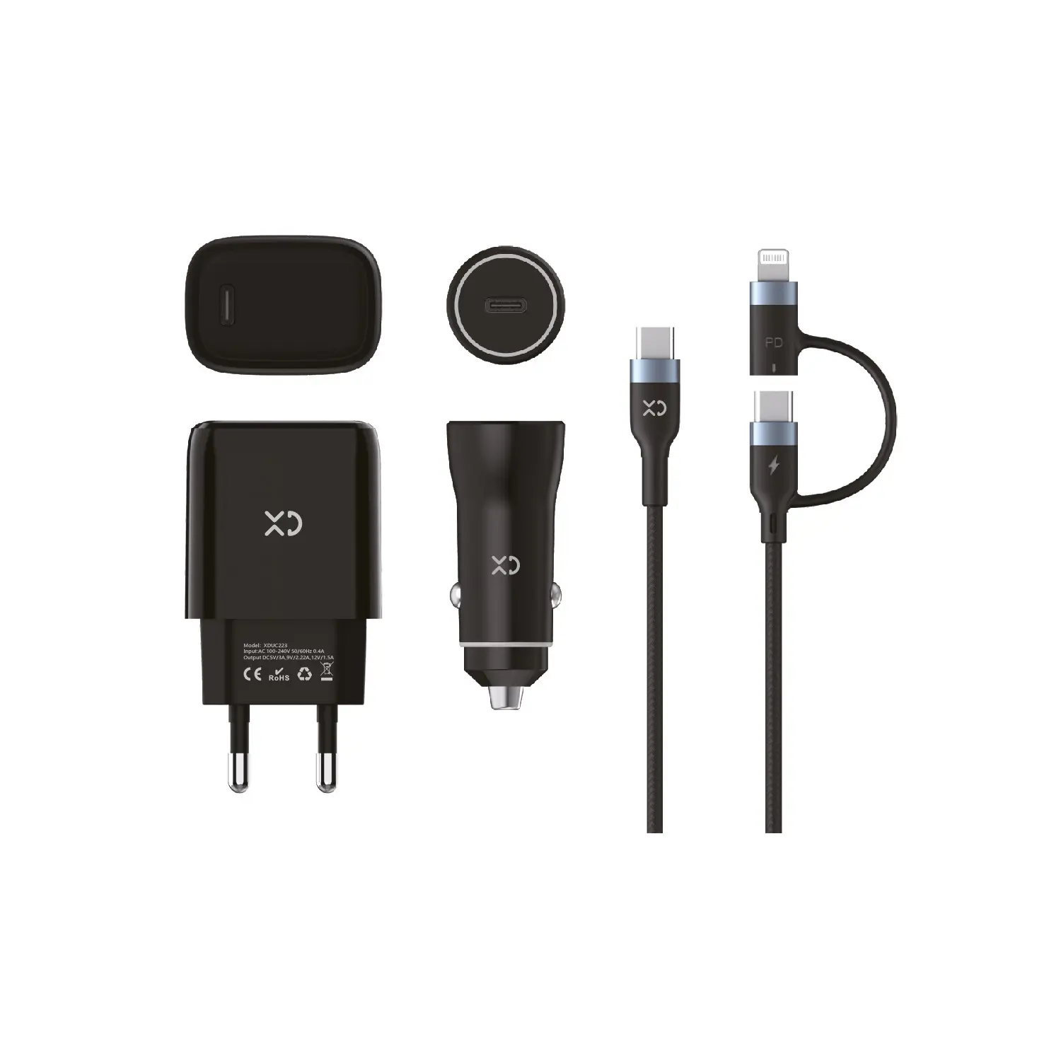 Caricabatterie auto/rete xd + 1m