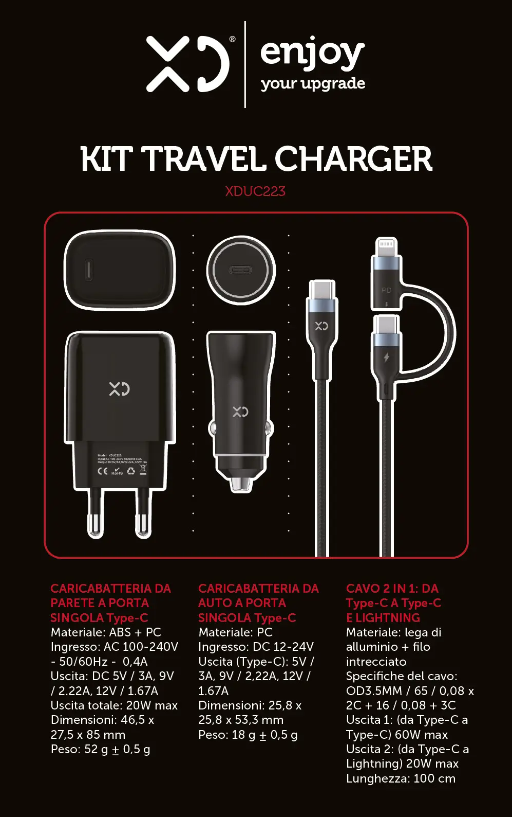 XD Enjoy XDUC223 Caricabatterie per dispositivi mobili Nero Auto, Interno