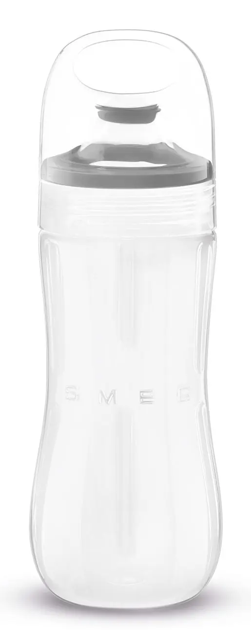 Smeg Accessori BGF03. Tipo di accessori: Bottiglia per frullatore, Colore del prodotto: Grigio, Trasparente, Materiale bottiglia: Tritan. Larghezza: 85 mm, Profondità: 85 mm, Altezza: 245 mm. Larghezza imballo: 329 mm, Profondità imballo: 189 mm, Altezza imballo: 143 mm. Paese di origine: Cina, Non contiene: Bisfenolo A (BPA)