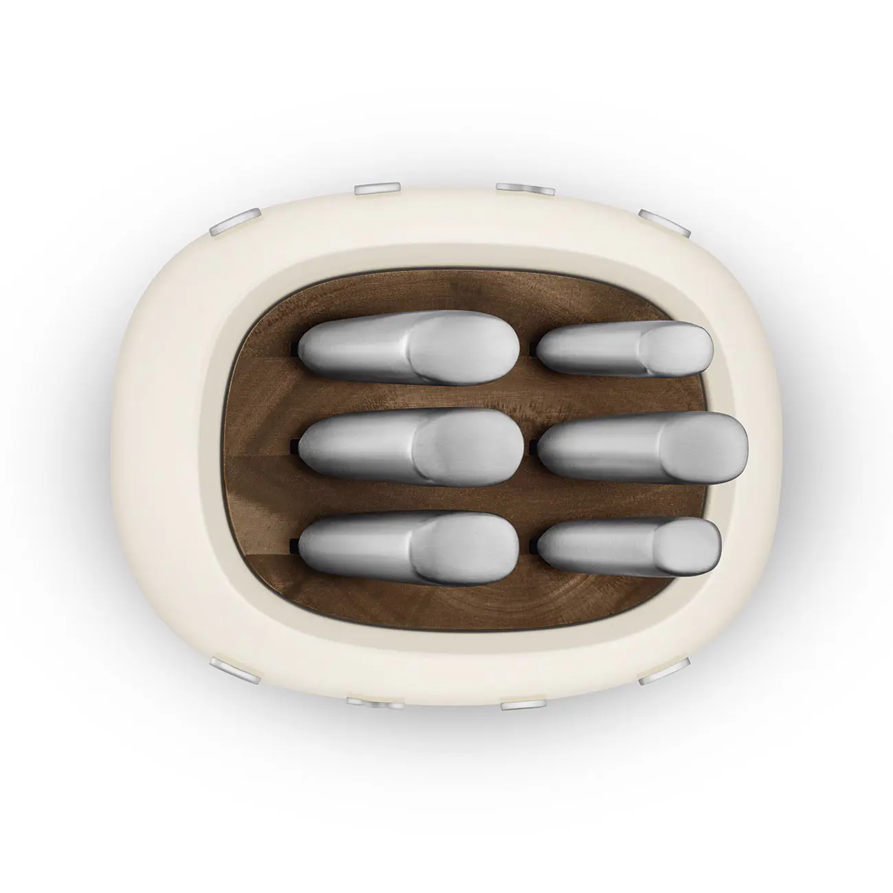 Smeg Ceppo con coltelli 50's Style - Panna LUCIDO - KBSF02CR, Ceppo per coltelli con fessure, Plastica, Acciaio inox, Legno, Cromo, Crema, Legno, 1 pz, 152 mm, 200 mm