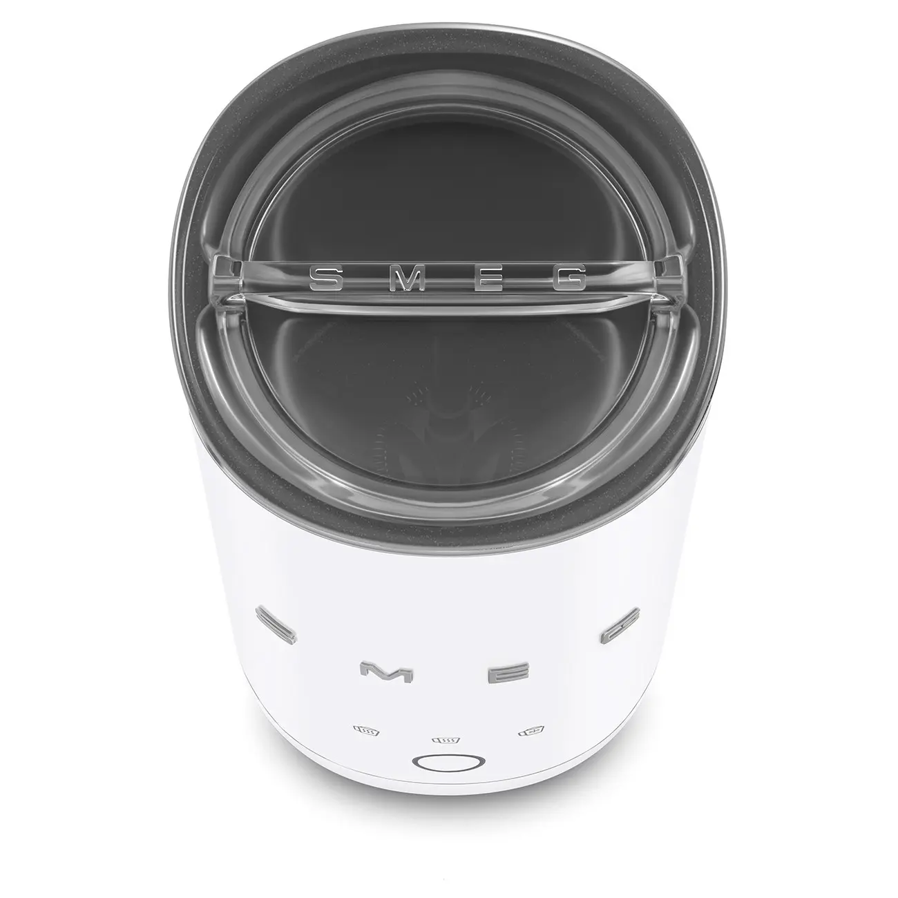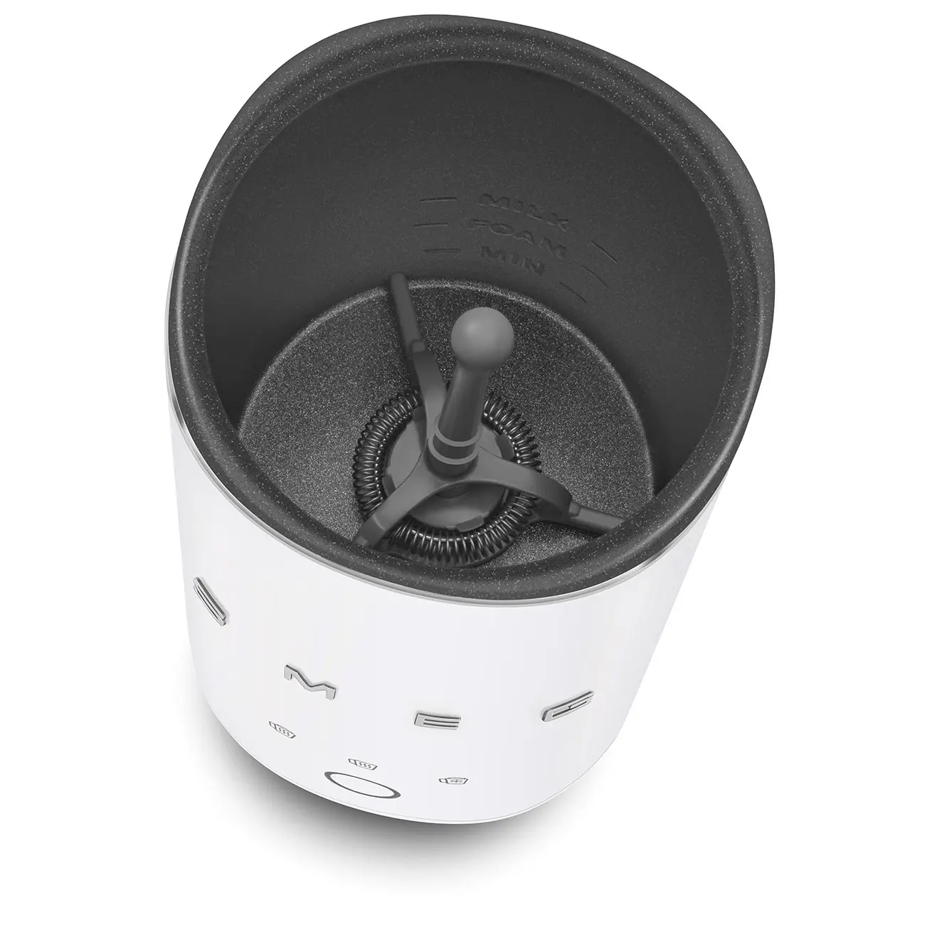 Smeg MFF02WHMEU. Colore del prodotto: Bianco, Capacita di schiumaggio: 120 ml, Capacità di riscaldamento del latte: 180 ml. Alimentazione: AC, Potenza: 500 W, Frequenza di ingresso AC: 50-60 Hz. Altezza: 200 mm, Peso: 840 g. Paese di origine: Cina. peso dell'imballaggio di carta: 1,54 kg, Peso dell'imballaggio in plastica: 31 g, Larghezza imballo: 144 mm