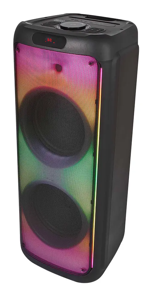 XD Enjoy XDHH120PS Party Speaker Nero 120 W. Diametro dell'unità: 20,3 cm, Diametro del tweeter: 5,08 cm (2"). Potenza in uscita (RMS): 120 W. Tecnologia di connessione: Con cavo e senza cavo, Range di frequenza: 2,402 - 2,48 GHz, Portata Bluetooth: 15 m. Tipo di prodotto: Altoparlante da festa, Colore del prodotto: Nero, Design del prodotto: Tower. Tipo batteria: Batteria integrata, Tipologia alimentazione: AC, Batteria, Voltaggio della batteria: 12 V