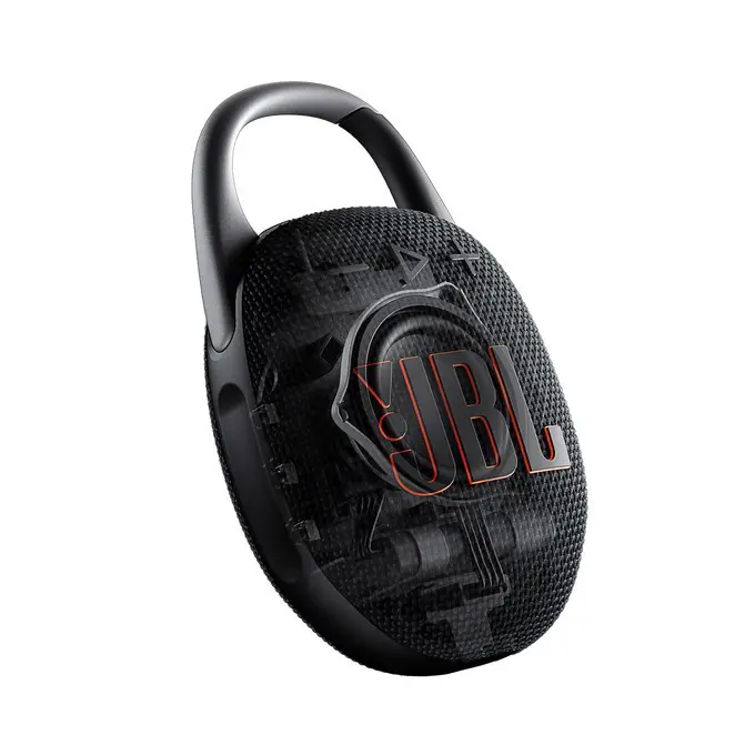 JBL Clip 5. Diametro dell'unità: 4,5 cm. Potenza in uscita (RMS): 7 W, Range di frequenza: 90 - 20000 Hz, Rapporto segnale/rumore (SNR): 85 dB. Tecnologia di connessione: Wireless, Range di frequenza: 2,4 - 2,4835 GHz, Profili Bluetooth: A2DP, AVRCP. Tipo di prodotto: Altoparlante portatile mono, Colore del prodotto: Mimetico, Funzioni di protezione: Impermeabile. Utilizzo raccomandato: Universale