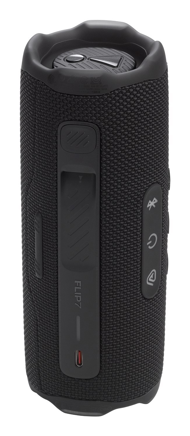 JBL Flip 7. Tipo di speaker: 2-vie, Diametro del tweeter: 1,52 cm (0.6"), Diametro del tweeter: 1,6 cm. Potenza RMS del woofer: 25 W, Potenza RMS del tweeter: 10 W, Range di frequenza: 60 - 20000 Hz. Tecnologia di connessione: Wireless, Profili Bluetooth: A2DP, AVRCP, Connettore USB: USB tipo-C. Colore del prodotto: Nero, Design del prodotto: Cilindro, Controllo del volume: Pulsanti. Utilizzo raccomandato: Universale