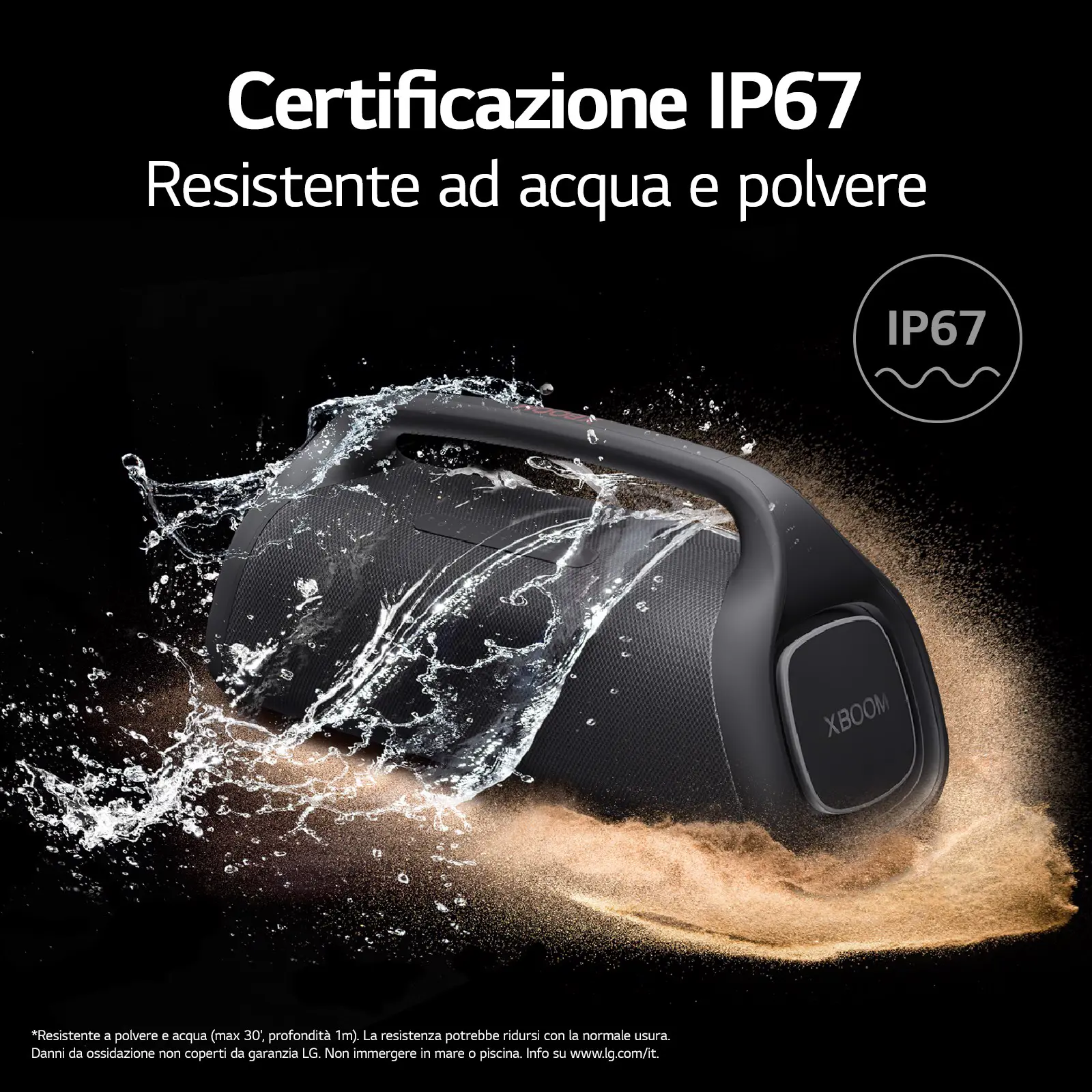 Lo speaker XG9 è certificato IP67 per la sua resistenza all'acqua e alla polvere. Così potrai ascoltare la tua musica senza preoccuparti delle intemperie né della polvere in eccesso.