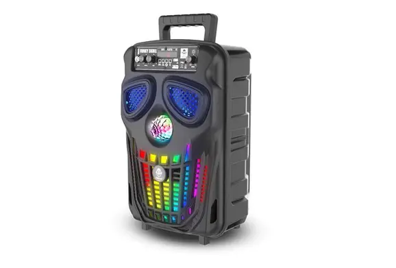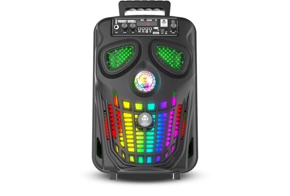 iDance Funky Skull FS400. Potenza in uscita (RMS): 80 W. Tecnologia di connessione: Con cavo e senza cavo. Colore del prodotto: Nero, Materiale della scocca: Acrilonitrile butadiene stirene (ABS). Utilizzo raccomandato: Universale, Tipi schede di memoria: MicroSD (TransFlash). Tipo batteria: Batteria integrata, Tecnologia batteria: Ioni di Litio, Durata batteria: 8 h