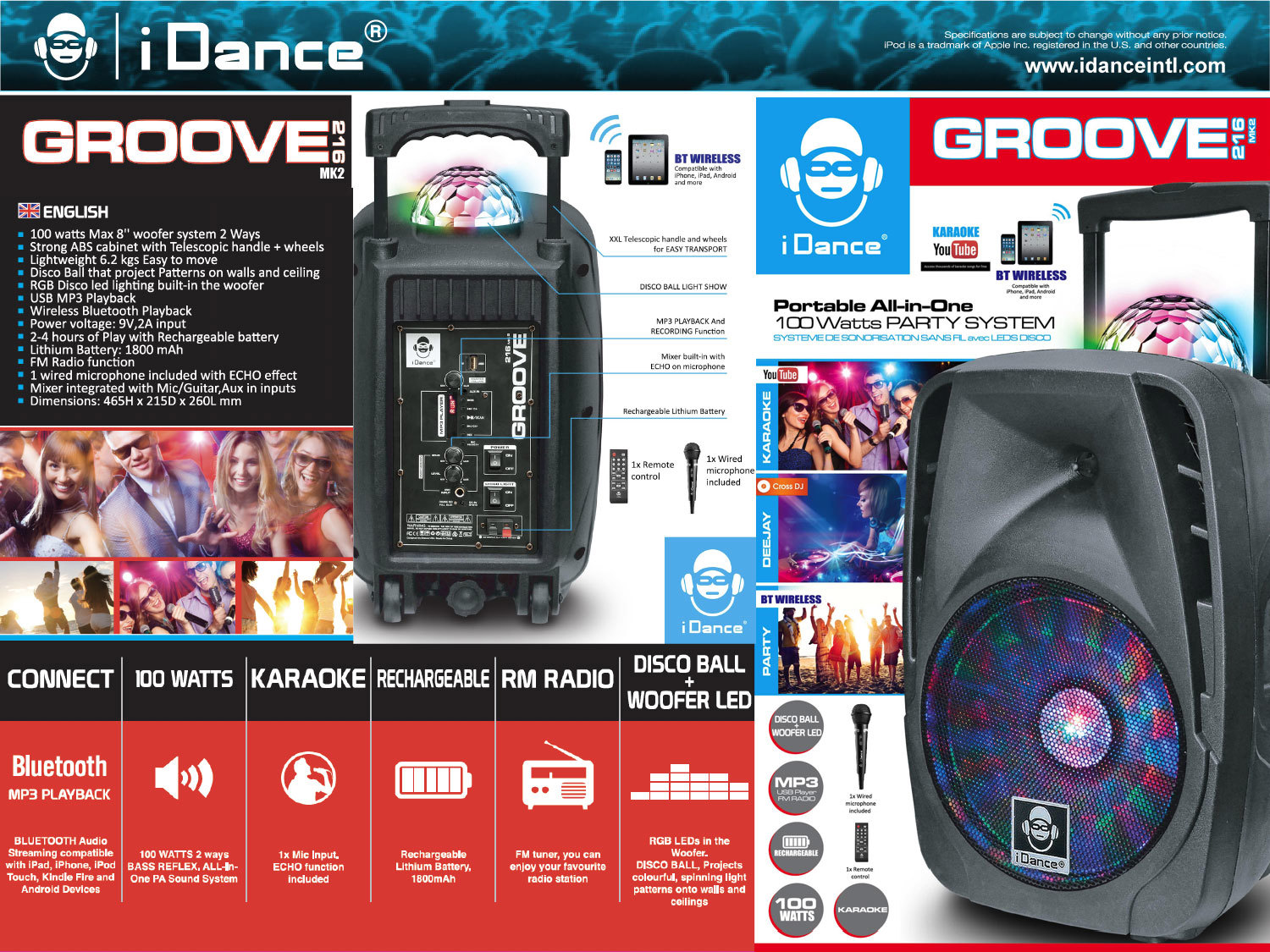 iDance Groove 216 Cassa Trolley Bluetooth a batterie con microfono incluso Nero 100 W