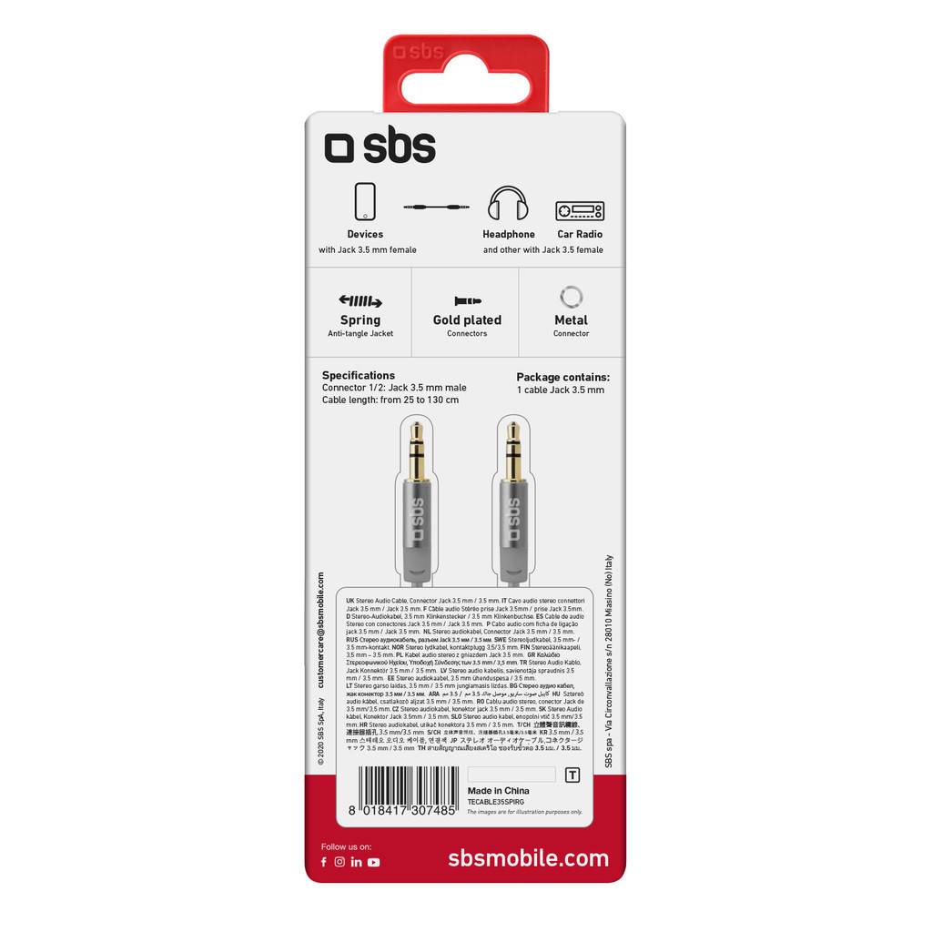 cavo audio a spirale è l?accessorio perfetto per te che vuoi connettere smartphone o tablet a cuffie, autoradio, speaker o home theater dotati di prese per jack da 3,5mm.