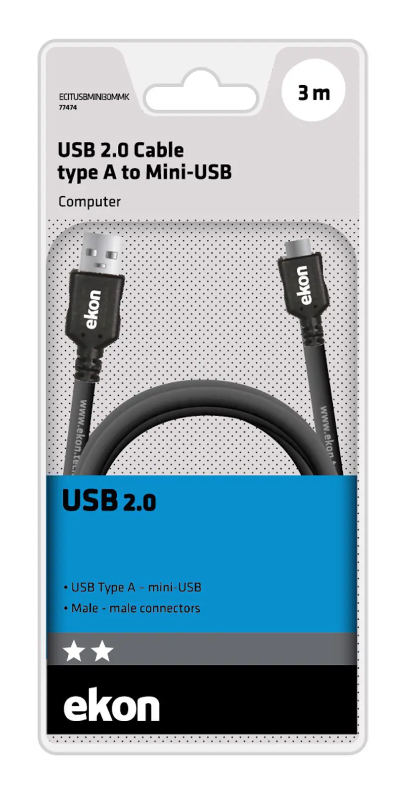 Ekon ECITUSBMINI30MMK, 3 m, USB A, Mini-USB A, USB 2.0, Nero