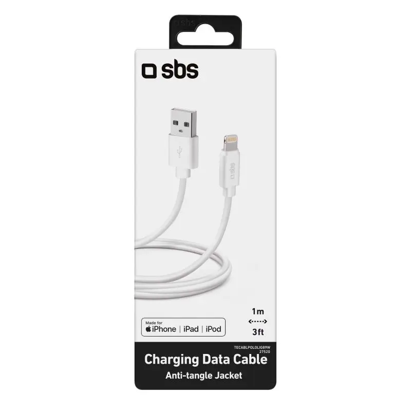 SBS TECABLPOLOLIG89W, 1 m, Lightning, USB A, Maschio, Maschio, Bianco
