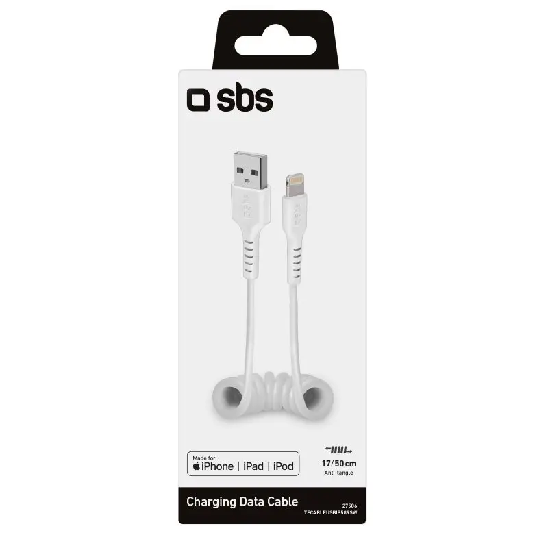 SBS TECABLEUSBIP589SW, Lightning, USB A, Maschio, Maschio, Bianco, Dritto
