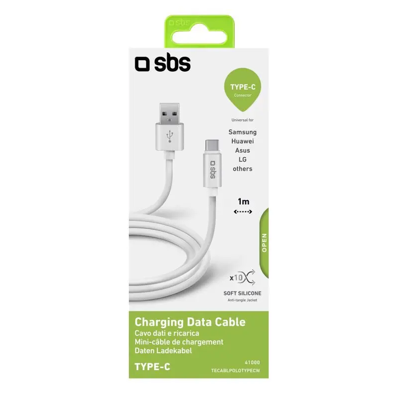 SBS Cavo dati in silicone 1 m - Connettori USB a USB-C, 1 m, USB A, USB C, USB 2.0, Bianco