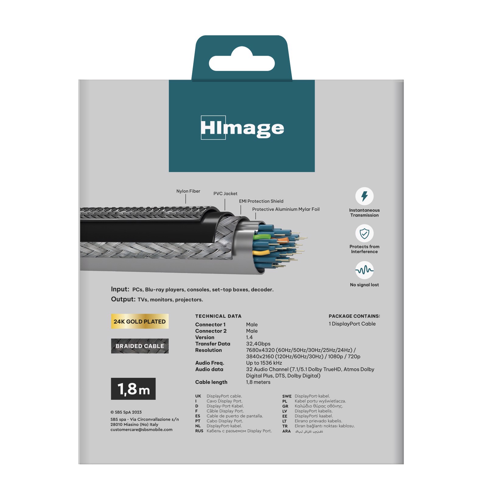 Risoluzione fino a 4K Ultra HD, 1.8m di lunghezza