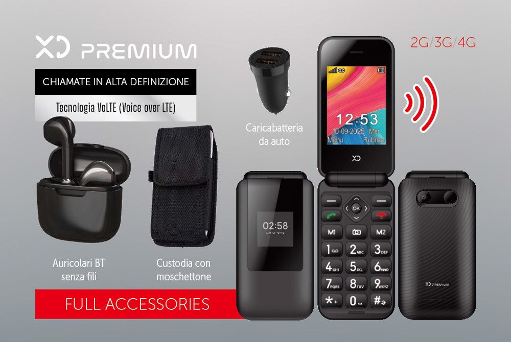 XD Enjoy XDEZF88BK. Fattore di forma: Clamshell. Capacità della scheda SIM: SIM singola. Dimensioni diagonale schermo: 7,11 cm (2.8"), Display esterno: TFT. Risoluzione fotocamera posteriore (numerico): 0,3 MP. Bluetooth. Radio FM. Tecnologia batteria: Ioni di Litio, Capacità della batteria: 1400 mAh. Colore del prodotto: Nero