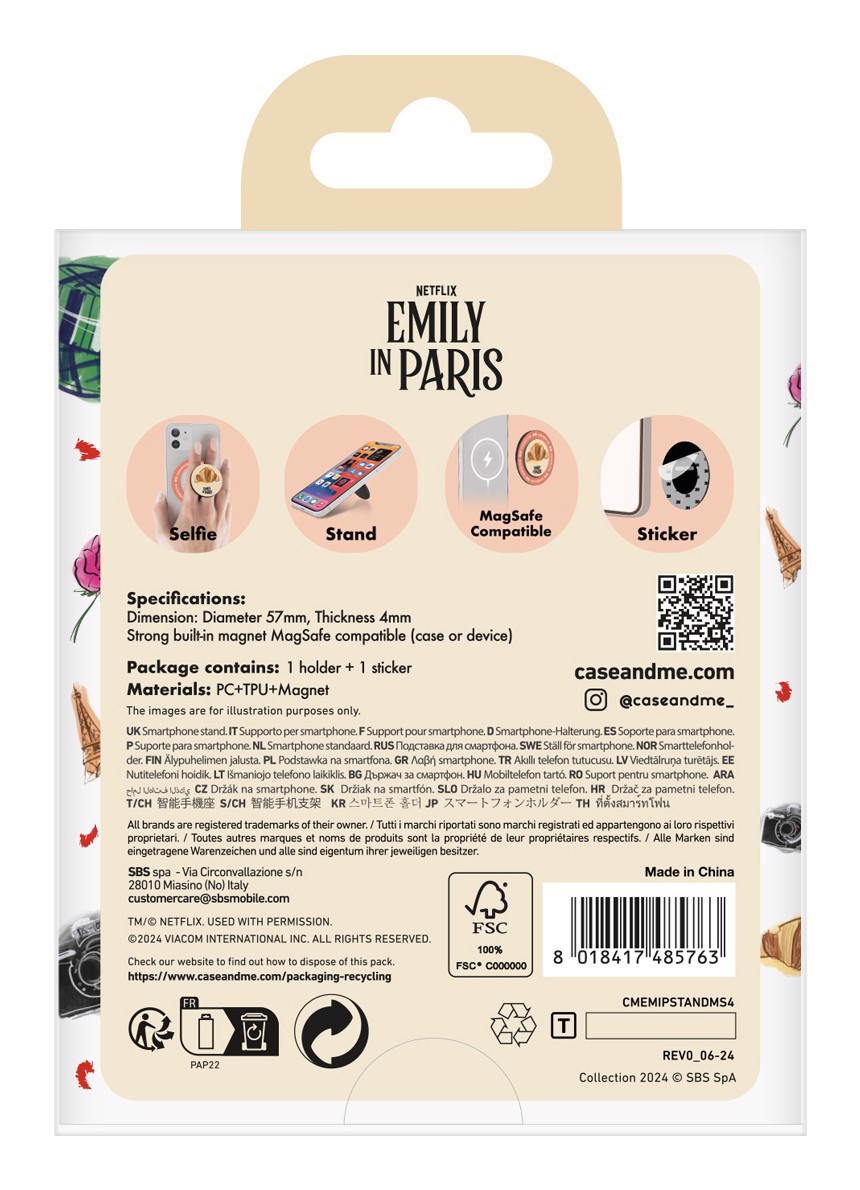 Case & Me CMEMIPSTANDMS4 Supporto universale per smartphone a tema Emily in Paris