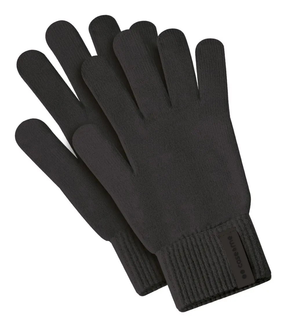 I guanti touch non sono solo funzionali, ma anche alla moda. L'etichetta con la scritta "case&me" e la finitura elastica a strisce sul polso