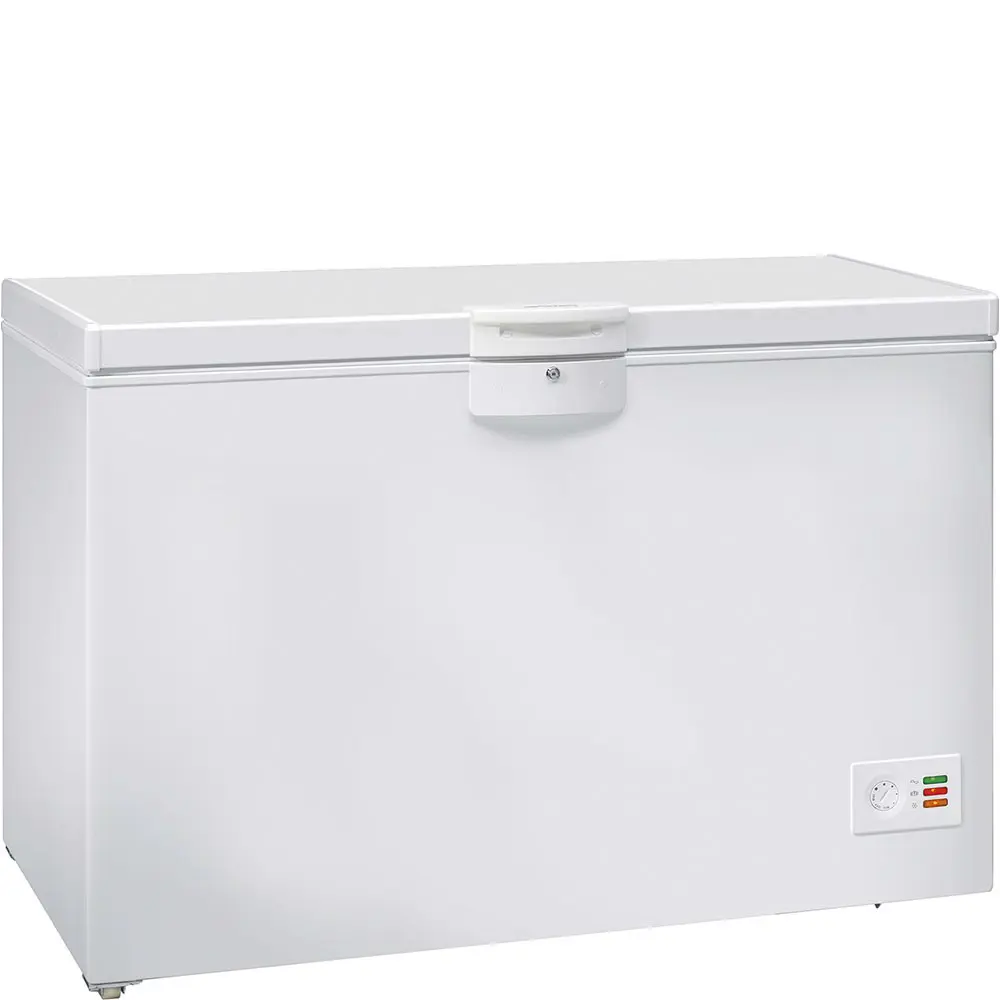 Smeg CO302E. Tipo di prodotto: Congelatore a pozzo, Posizionamento dell'apparecchio: Libera installazione, Colore del prodotto: Bianco. Capacità netta totale: 284 L, Classe emissione rumore: C, Emissione acustica: 38 dB. Tipo di lampada: Incandescente. Capacità netta congelatore: 284 L, Capacità lorda congelatore: 288 L, Capacità di congelamento: 17 kg/24h. Classe efficienza energetica: E, Consumo energetico annuo: 208 kWh, Scala di efficienza energetica: Da A a G