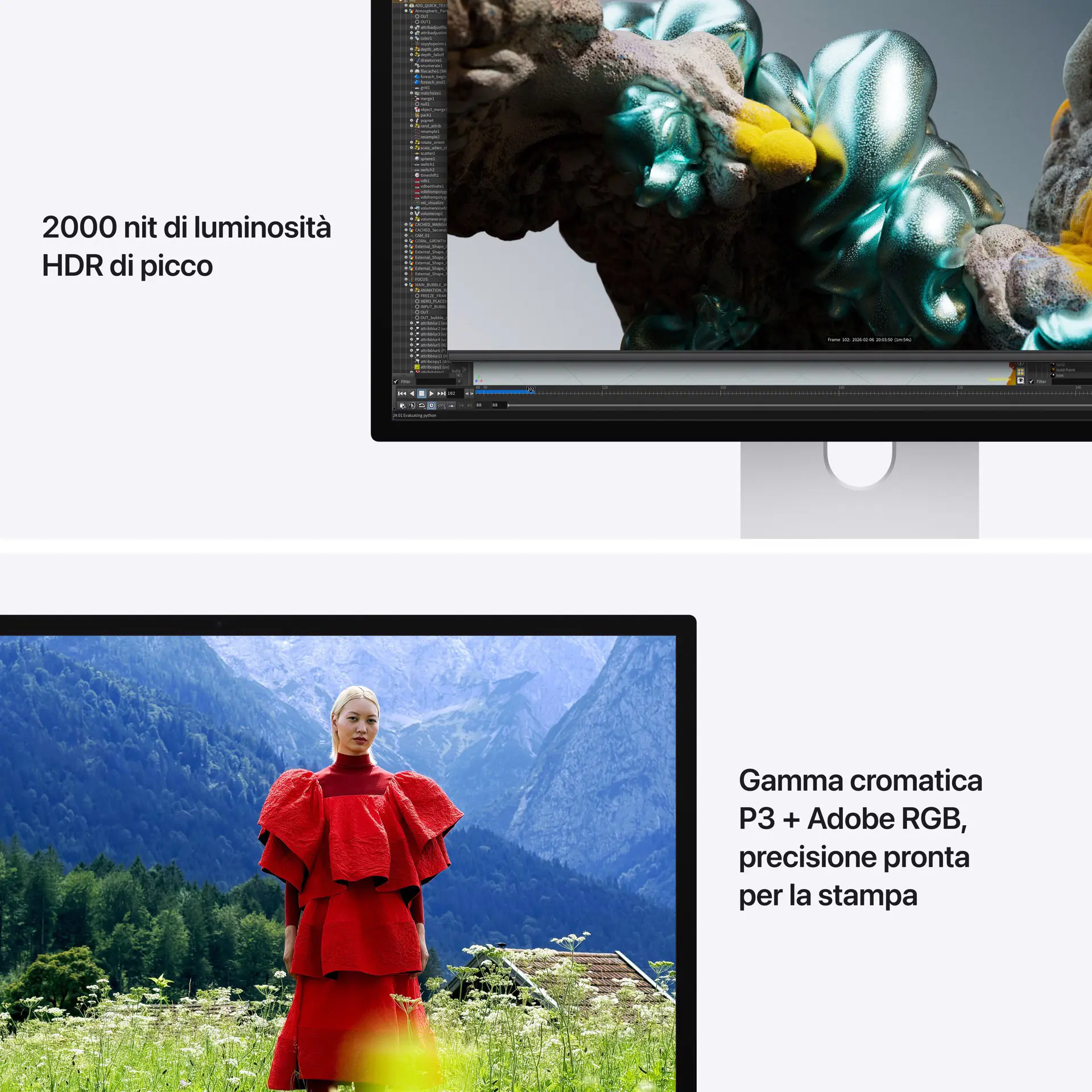 - UNA GAMMA DI COLORI ANCORA PIÙ AMPIA — Grazie alla possibilità di accedere agli spazi cromatici P3 e Adobe RGB, i colori risultano sempre incredibilmente accurati, dallo schermo alla stampa. E chi si occupa di video, fotografia e grafica ha a disposizione un’ampia varietà di modalità di riferimento.
