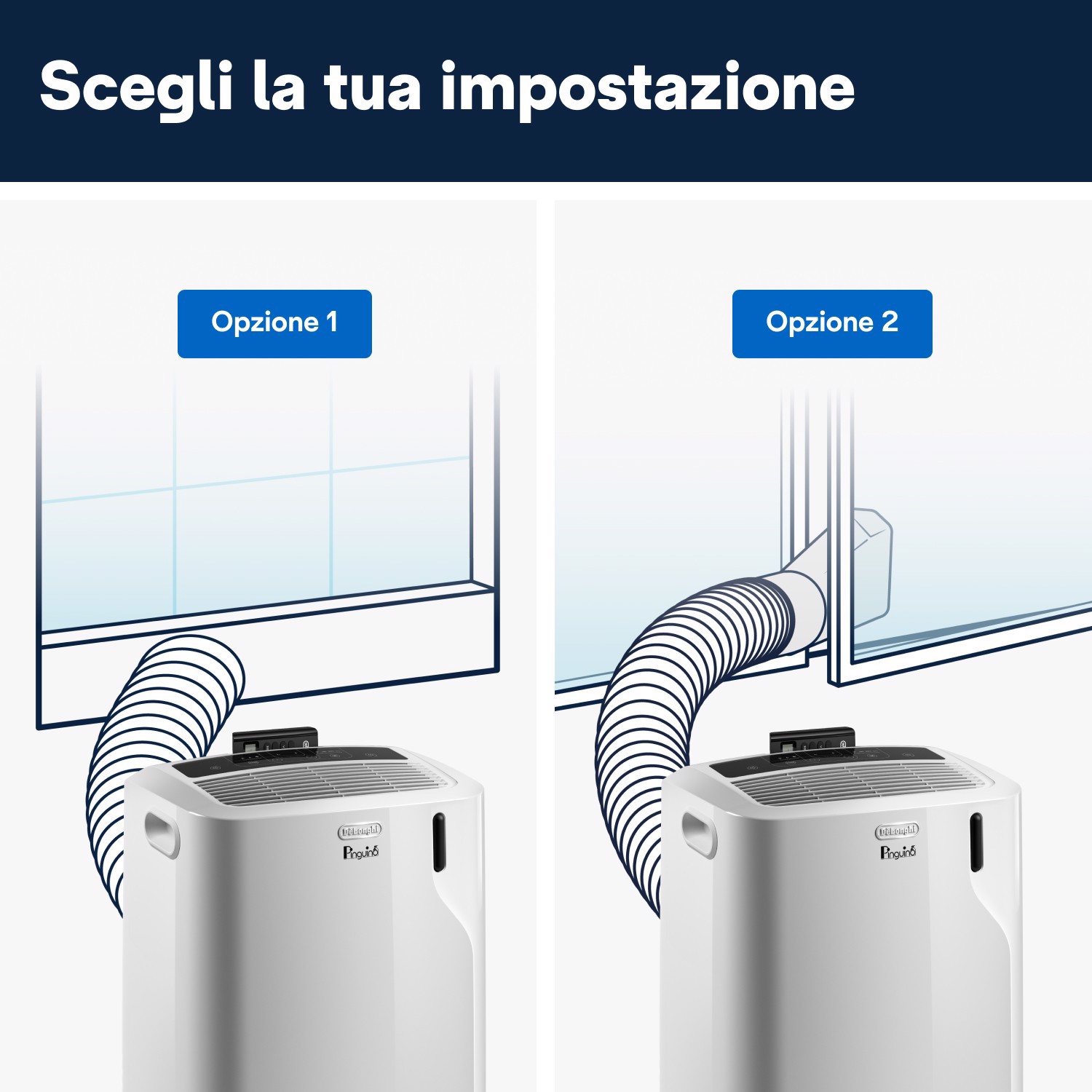 De’Longhi Climatizzatore portatile EM82 9000BTu. Classe di efficienza energetica (raffreddamento): A, Scala di efficienza energetica: Da A+++ a D, Consumo di energia (raffreddamento): 1000 W. Colore del prodotto: Bianco. Larghezza: 425 mm, Profondità: 345 mm, Altezza: 700 mm