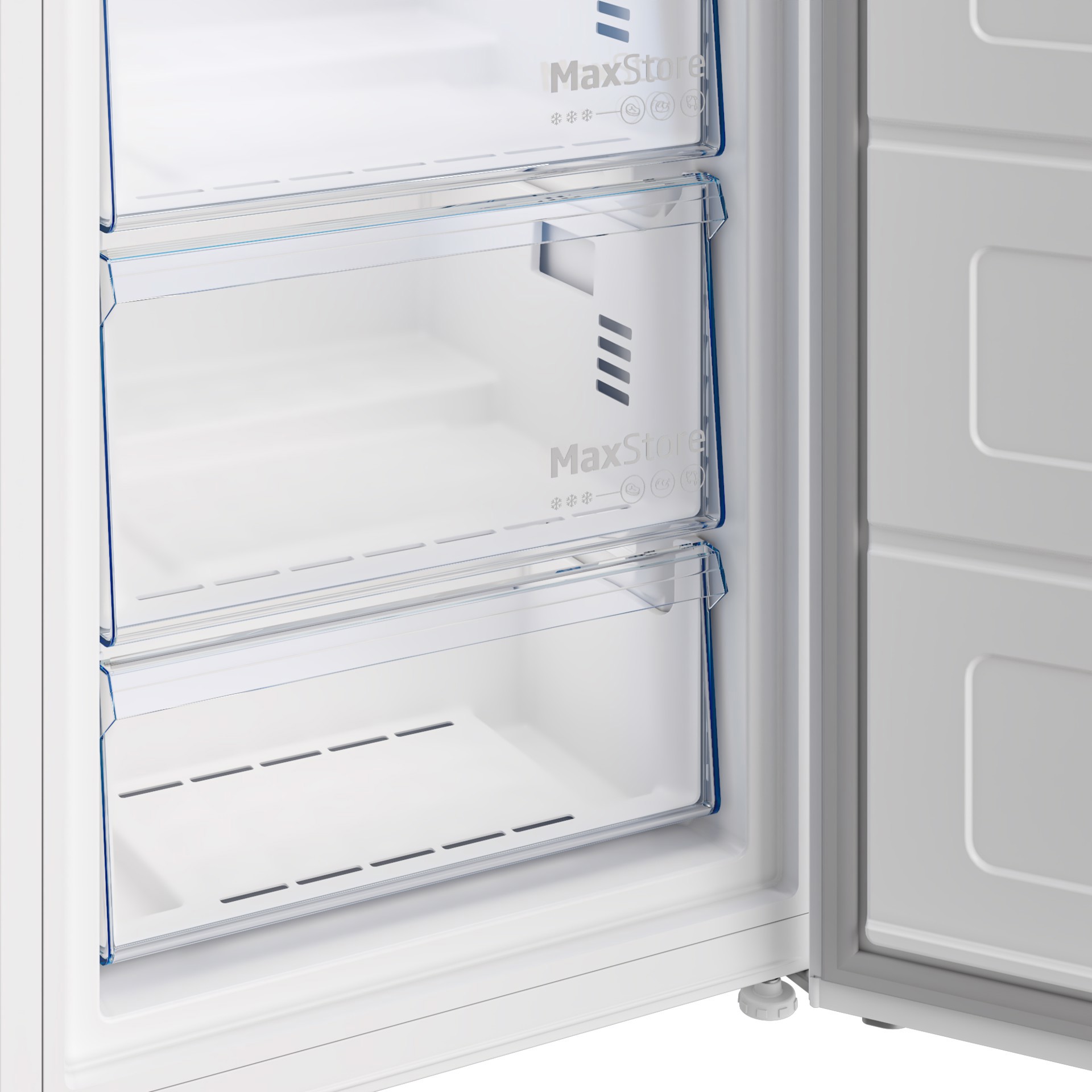 In alcune cucine, gli elettrodomestici devono essere posizionati in punti particolari. Le porte SmoothFit™ non superano il pannello laterale quando aperte a 90 gradi, così puoi posizionare il frigorifero in un angolo o accanto a una parete senza rinunciare alla praticità. E puoi aprire completamente i cassetti di frutta e verdura!