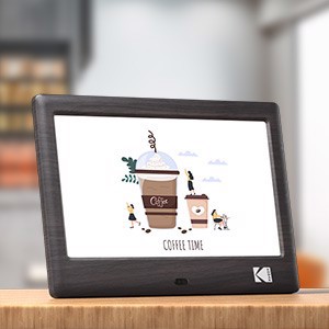 Kodak RDPF708C. Dimensioni diagonale schermo: 17,8 cm (7"), Risoluzione del display: 1024 x 600 Pixel, Tipologia display: IPS. Formati immagini supportati: BMP, GIF, JPEG, JPG, PNG, Formati video supportati: MKV, MOV, MP4, Formati audio supportati: 3GP, AAC, APE, FLAC, M4A, MA4, MP2, MP3, OGG, WAV, WMA. Tipi schede di memoria: MMC, SD, SDHC. Interfaccia: USB 2.0, Connessione cuffia: 3,5 mm. Potenza altoparlante: 1 W