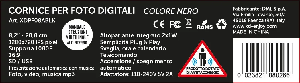 XD Enjoy XD XDPF08ABLK cornice per foto digitali Nero 20,8 cm (8.2")