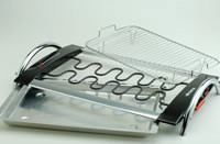 Barbecue elettrico leggero e maneggevole, con un design moderno ed essenziale, con resistenze a vista, dotato di una doppia griglia per girare gli alimenti con facilità. Grazie al vassoio in alluminio nel quale viene versata l'acqua, si riduce la formazione del fumo ed è quindi adatto anche per gli ambienti chiusi.